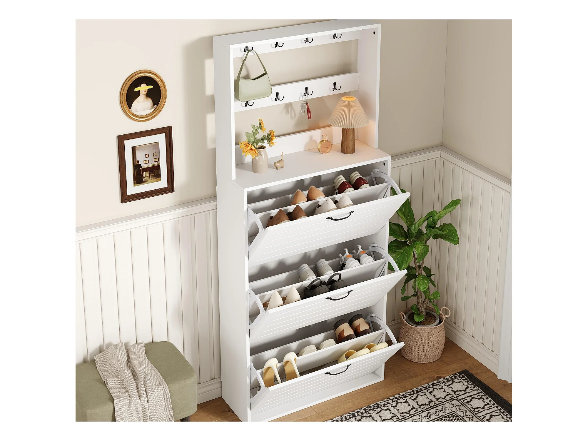 Meuble à chaussures moderne - 4 compartiments abattants - Blanc