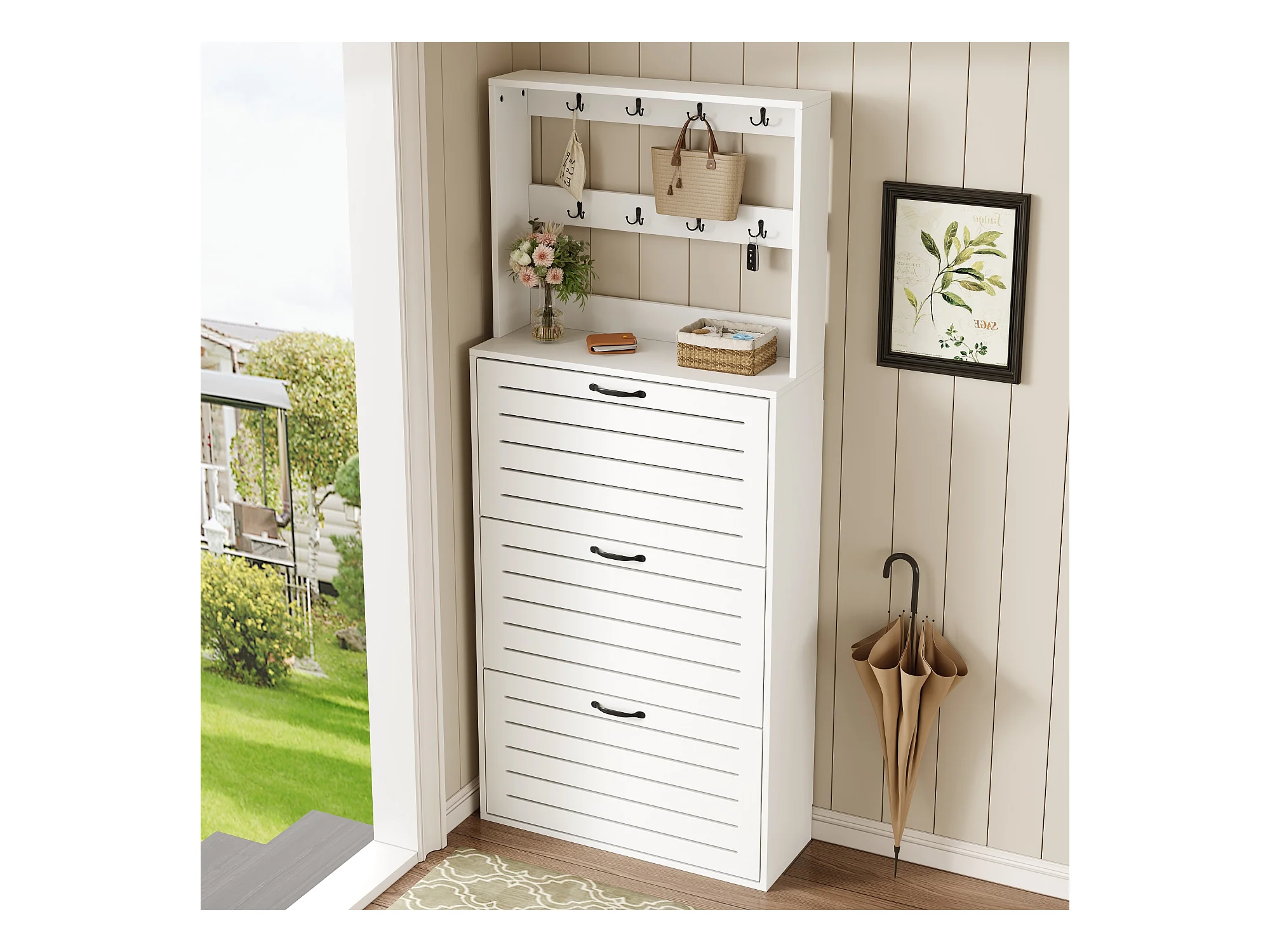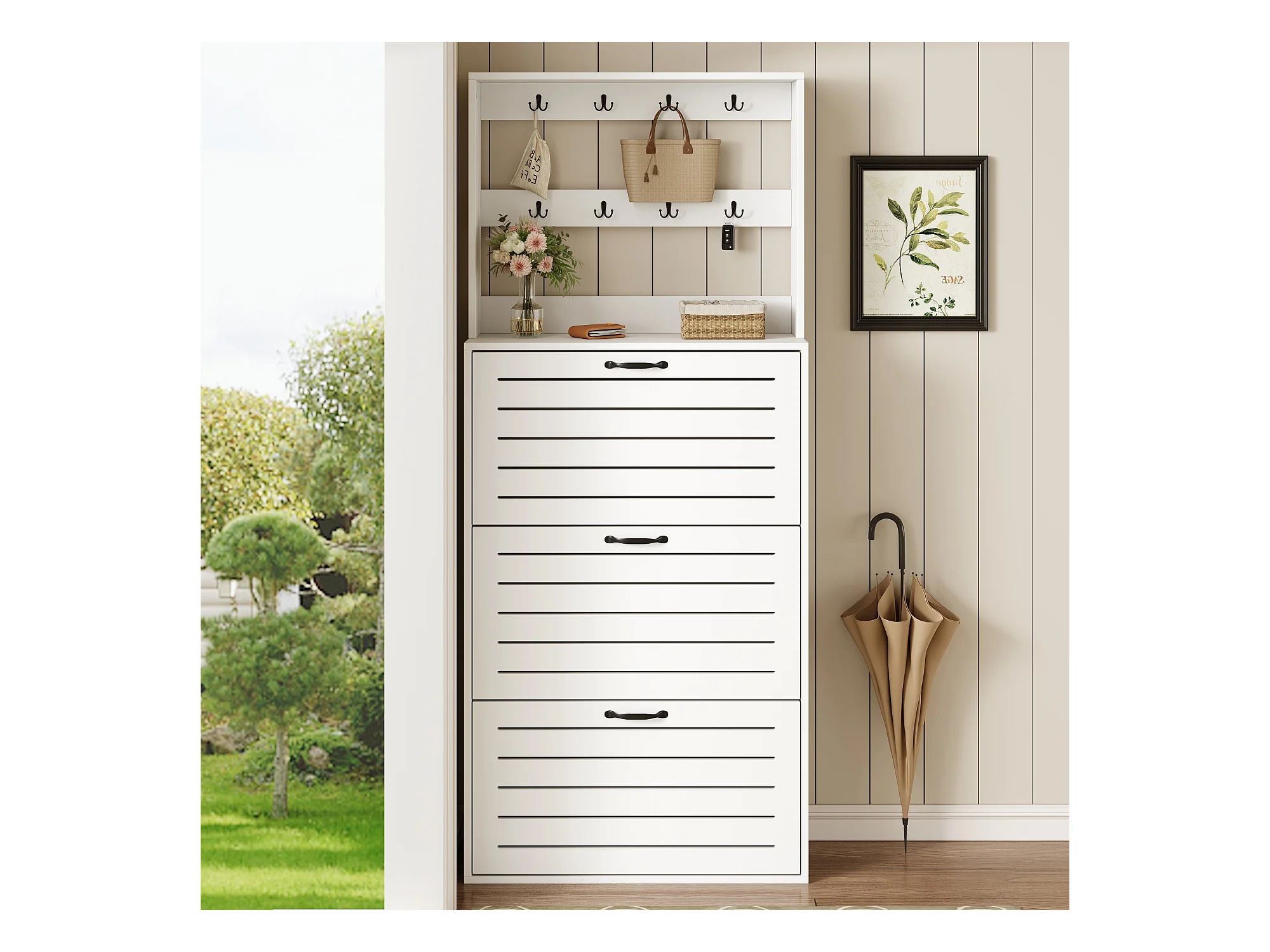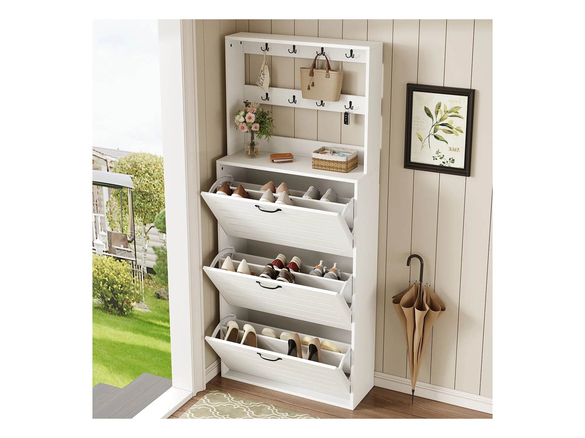 Meuble à chaussures - 3 abattants, 1 tiroir et 1 porte - Blanc