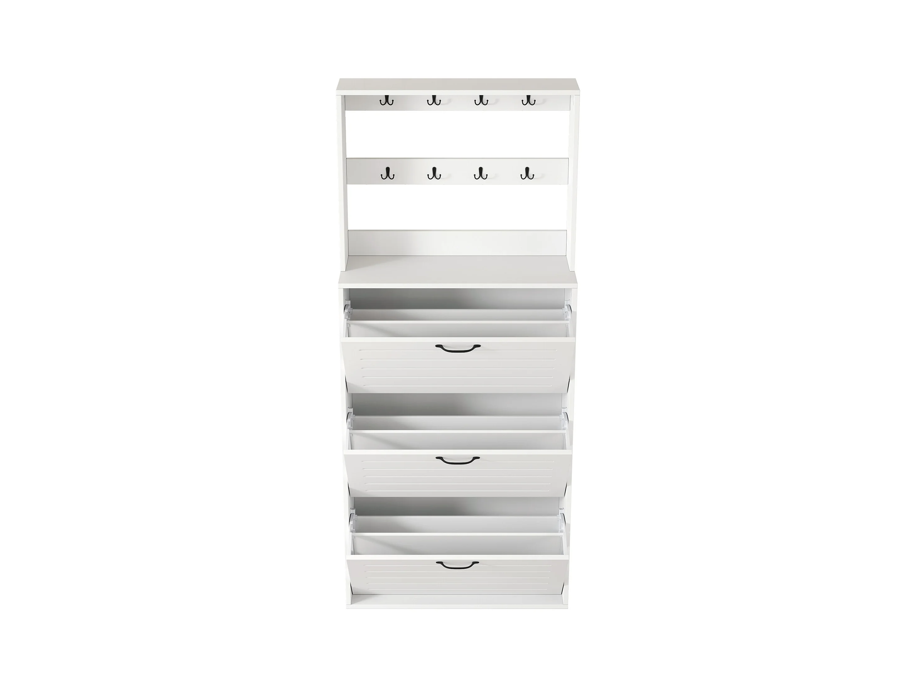 Meuble à chaussures multifonction 119x24x122cm - avec 3 tiroirs rabattables - avec banc rabattable - avec une porte - blanc