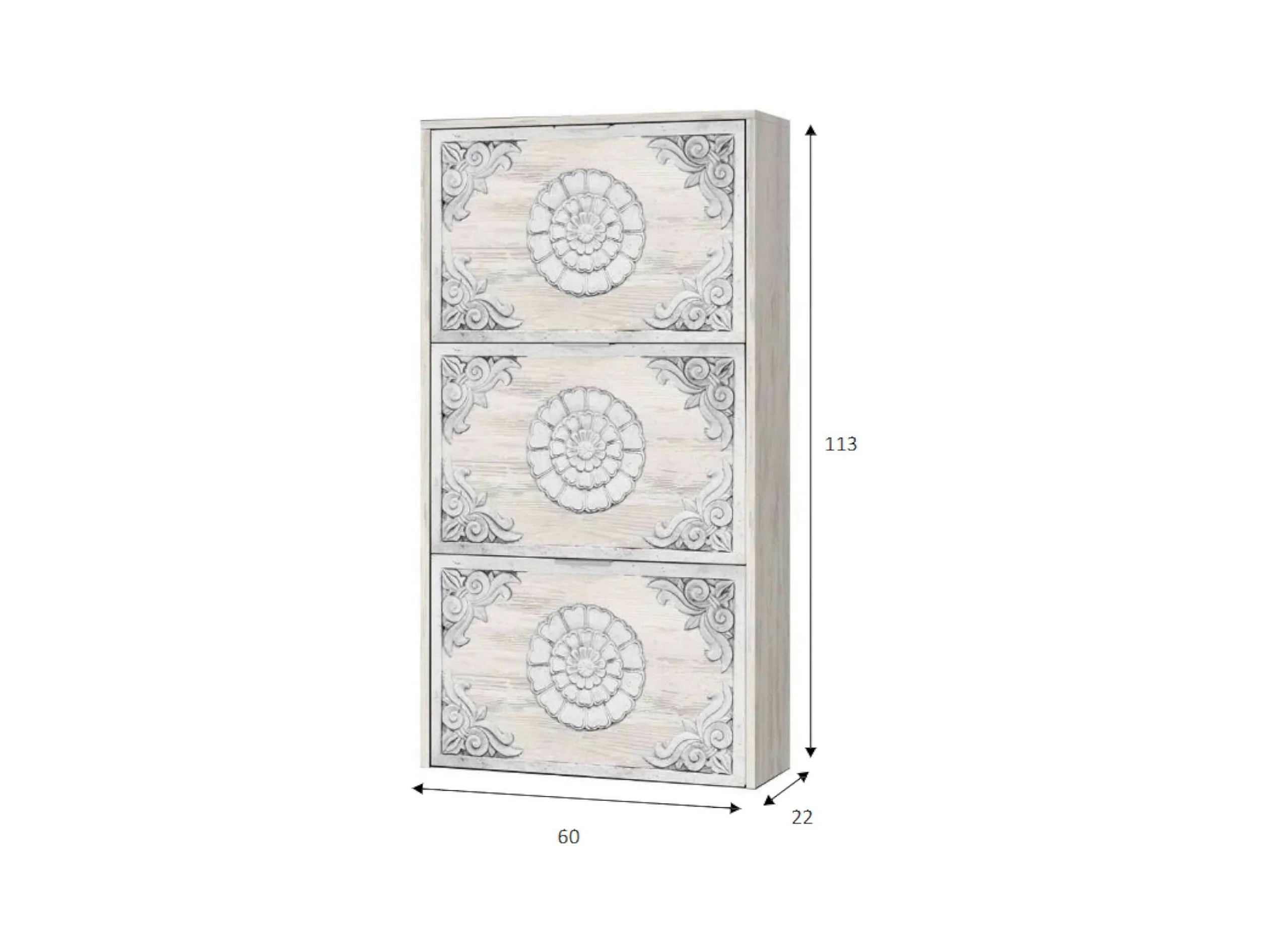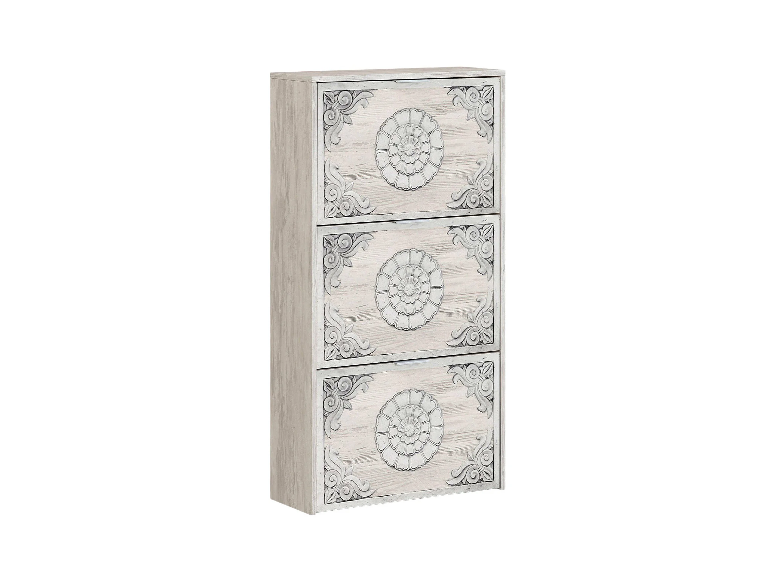 Zapatero Escondido, armario zapatero con 3 puertas plegables, mueble doble capacidad para hasta 18 pares de zapatos, 60x22h113 cm, Blanco