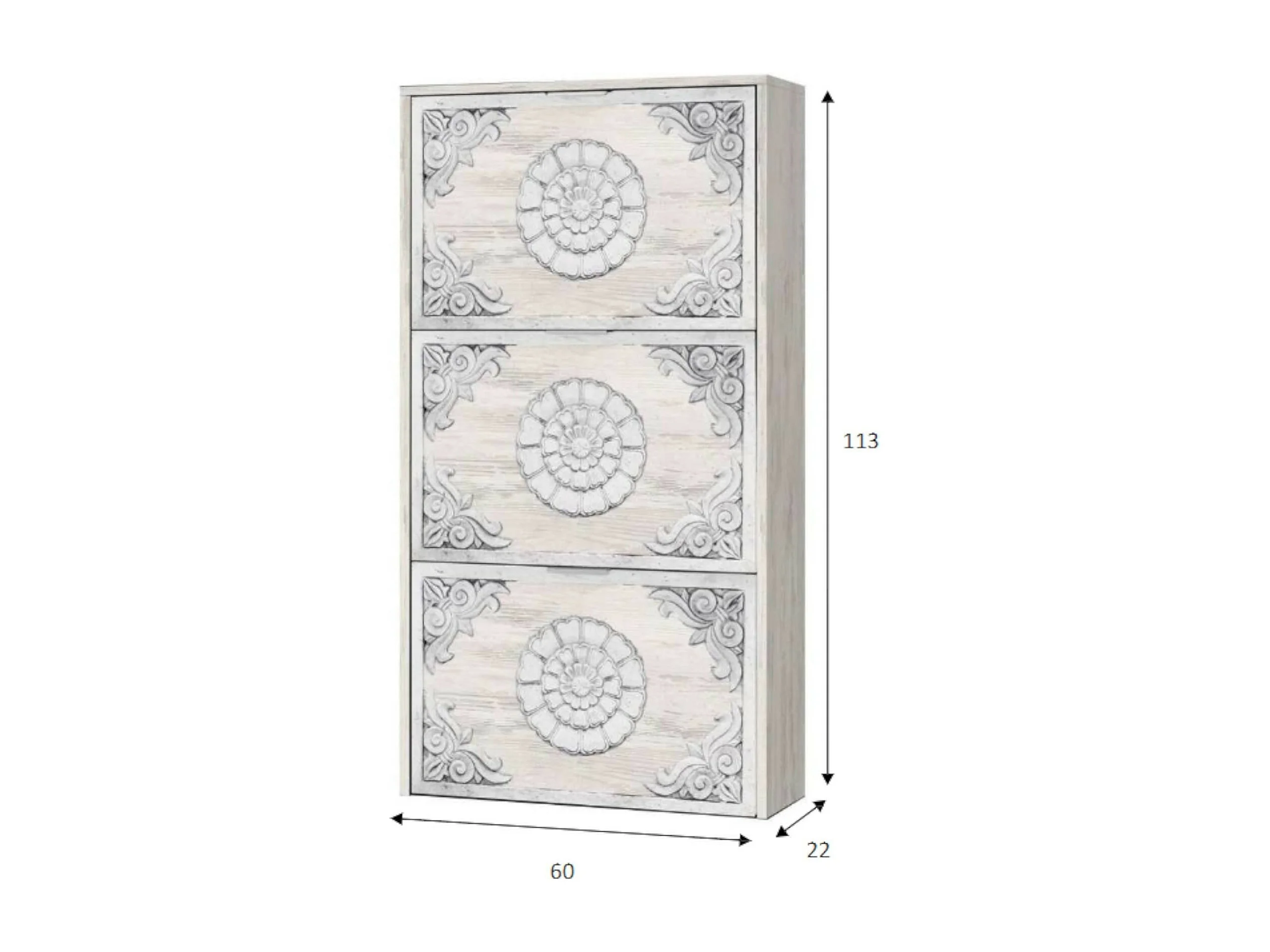 Dcota étagère à chauure, armoire à chauure avec 3 porte pliante, armoire double capacité pouvant accueillir juqu'à 18 paire de chauure, 60x22h113 cm, blanc antique