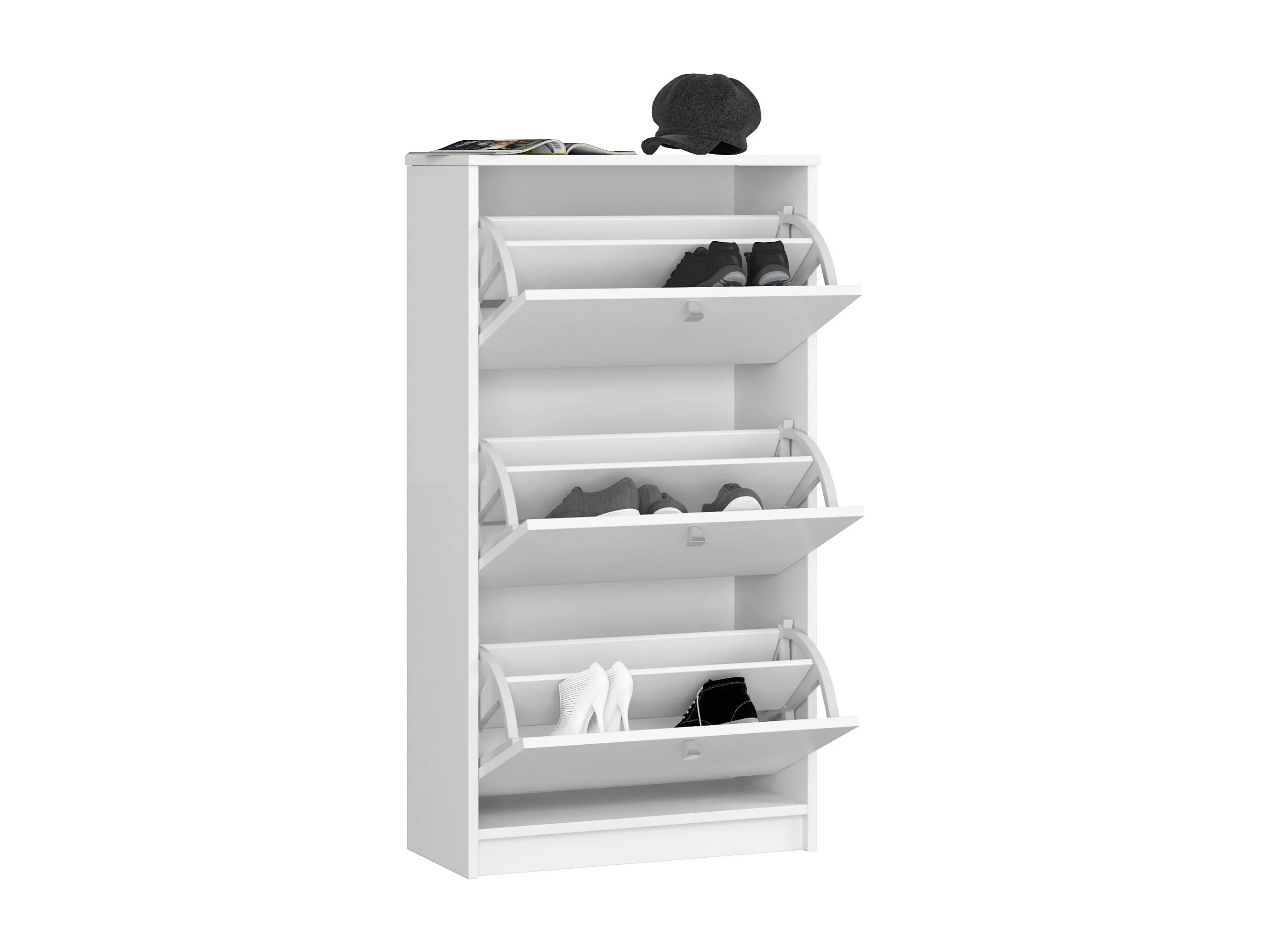 Meuble à chaussures AKORD Blanc 60 cm 3 portes façade Blanche 3 étagères 60x28,5x113 cm