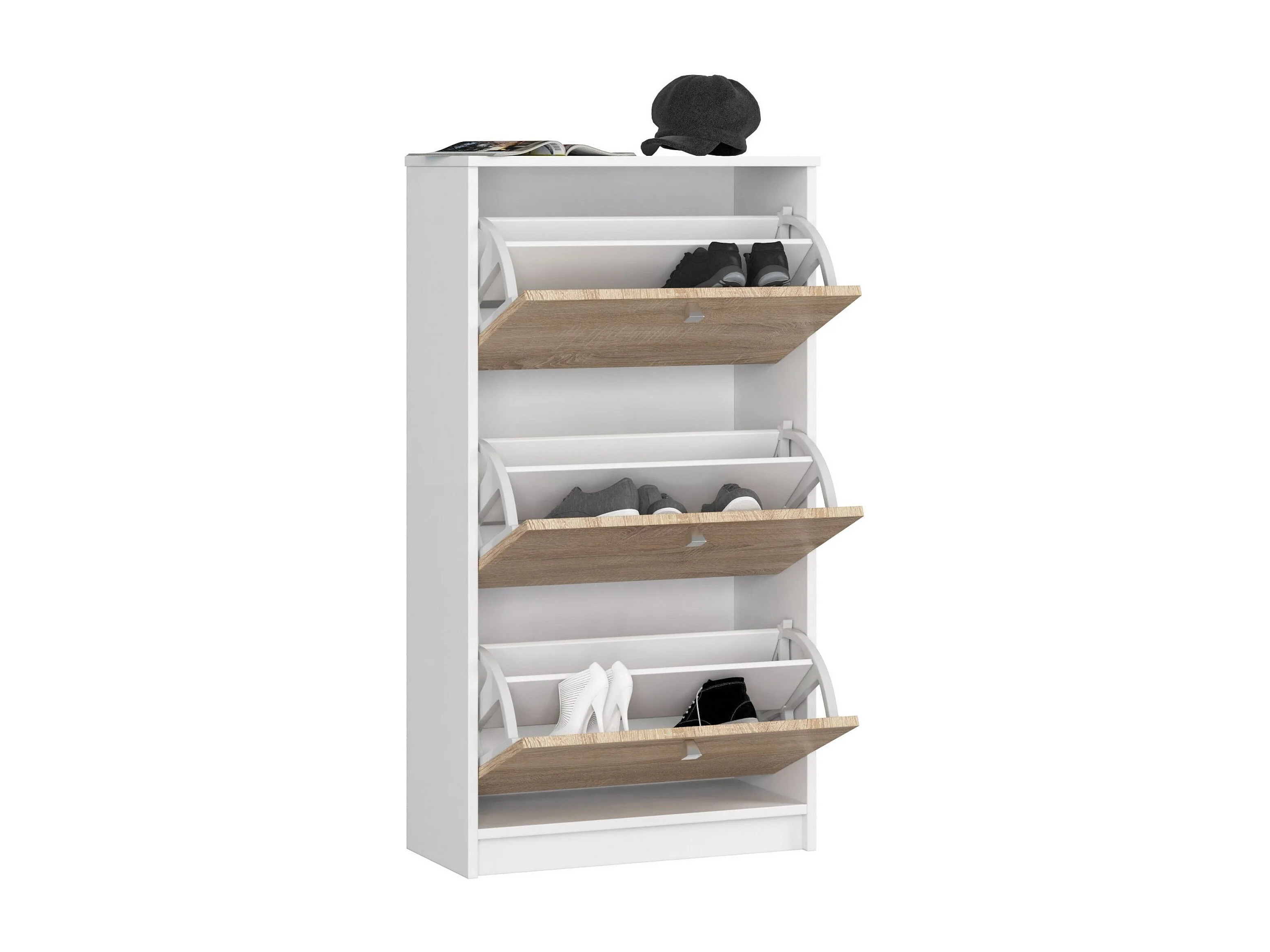 Meuble à chaussures AKORD Blanc 60 cm 3 portes façade Chêne Sonoma 3 étagères 60x28,5x113 cm