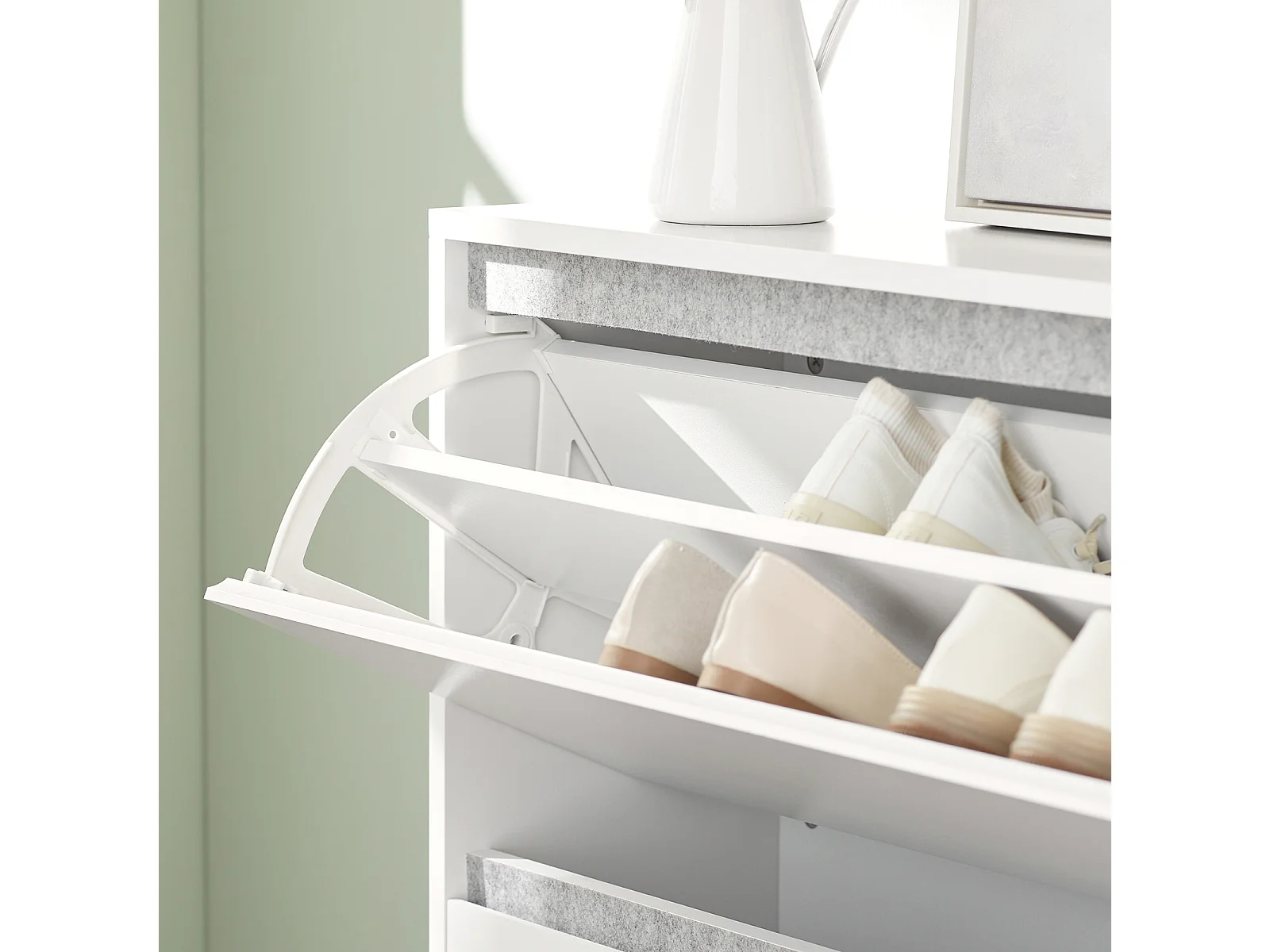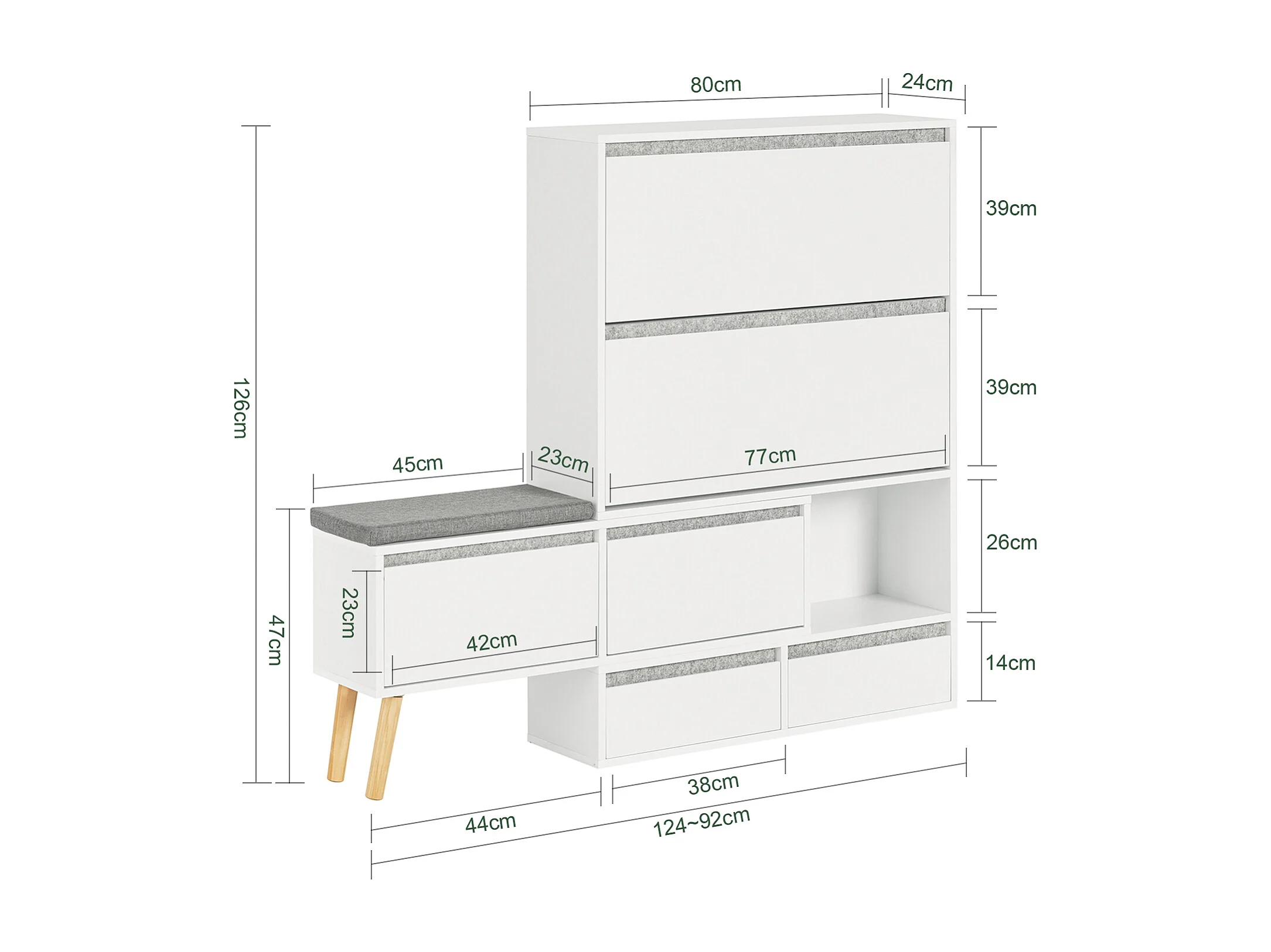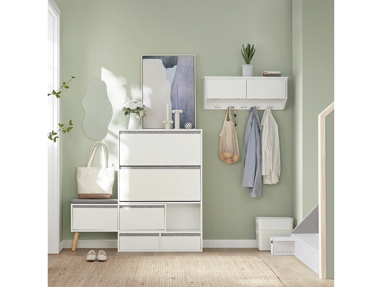 Meuble à Chaussures, Armoire à Chaussures avec 1 Banc de Rangement Amovible sur Pieds, FSR134-W