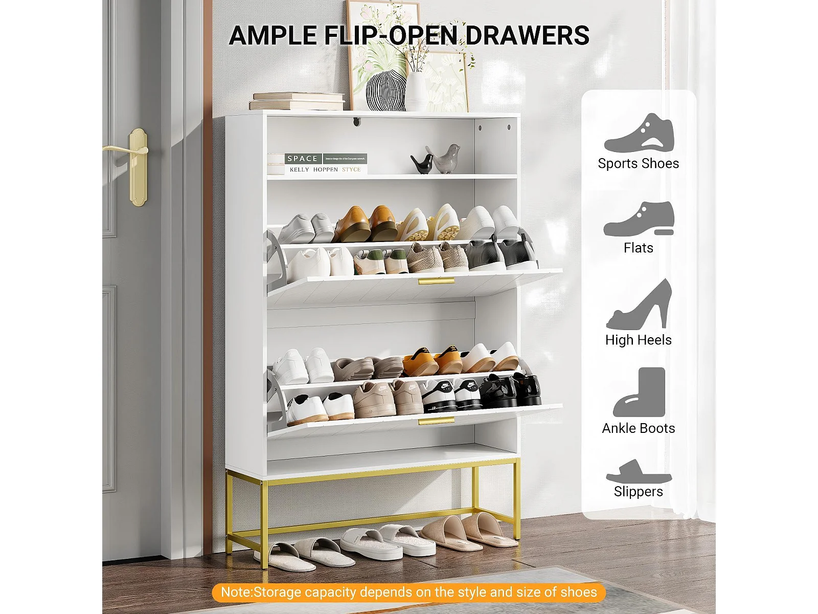 Meuble à chaussures vertical ERA – 4 tiroirs – Blanc brillant