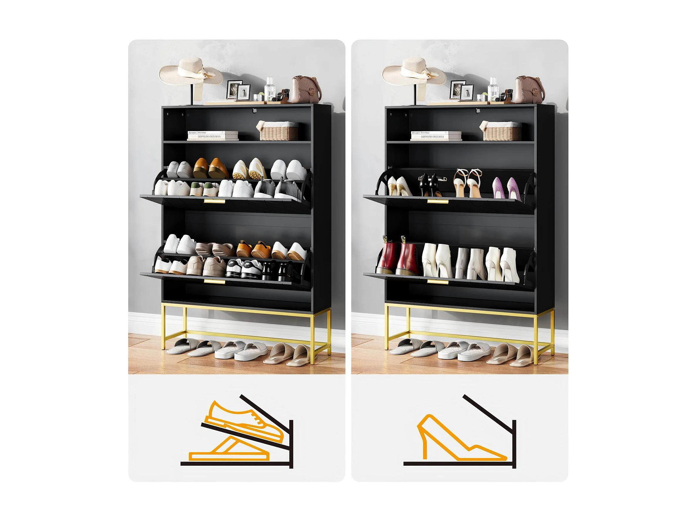 Meubles à chaussures KLARK coloris noir haute brillance – 18 paires