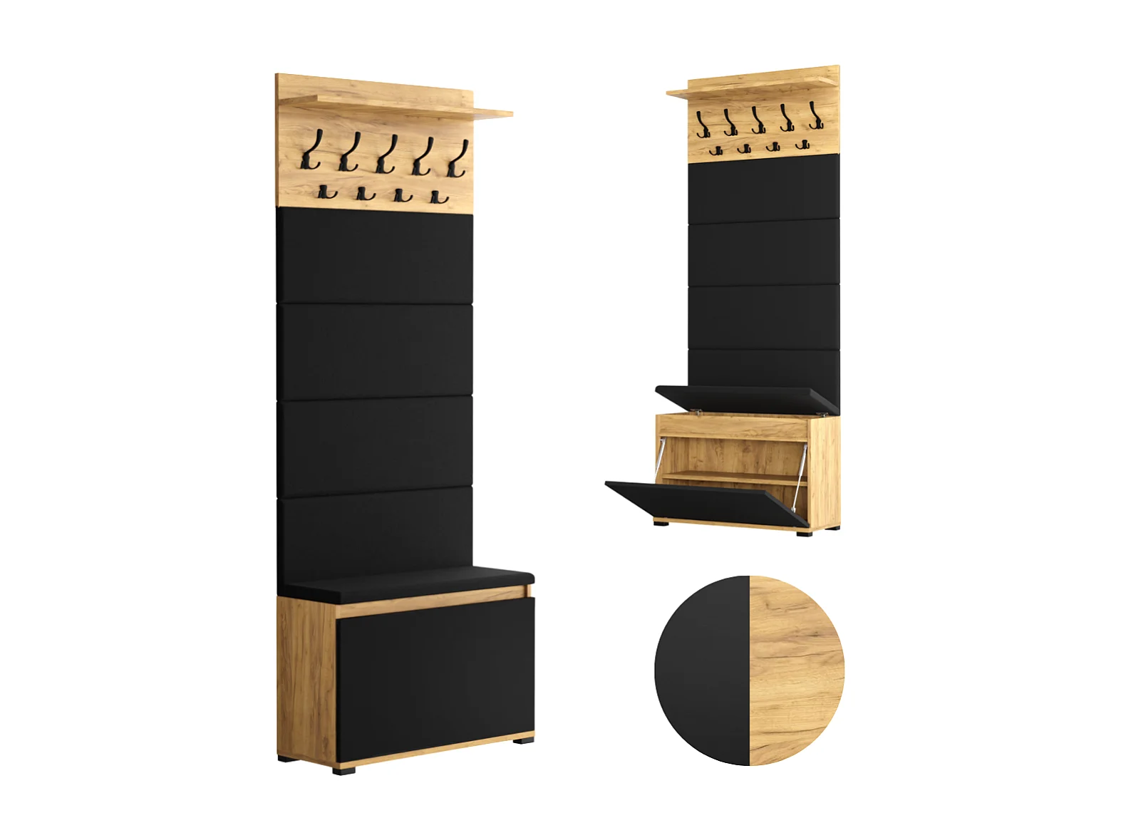 Meuble à chaussures avec assise, banc rembourré et patère pour entrée