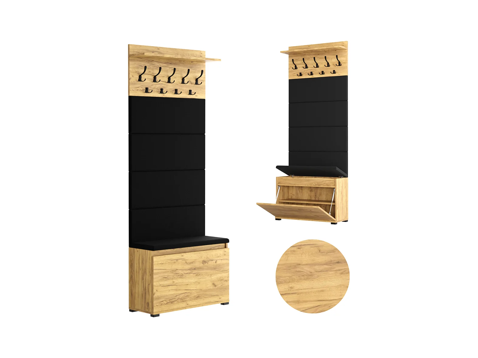 Meuble à chaussures avec assise, banc rembourré et patère pour entrée