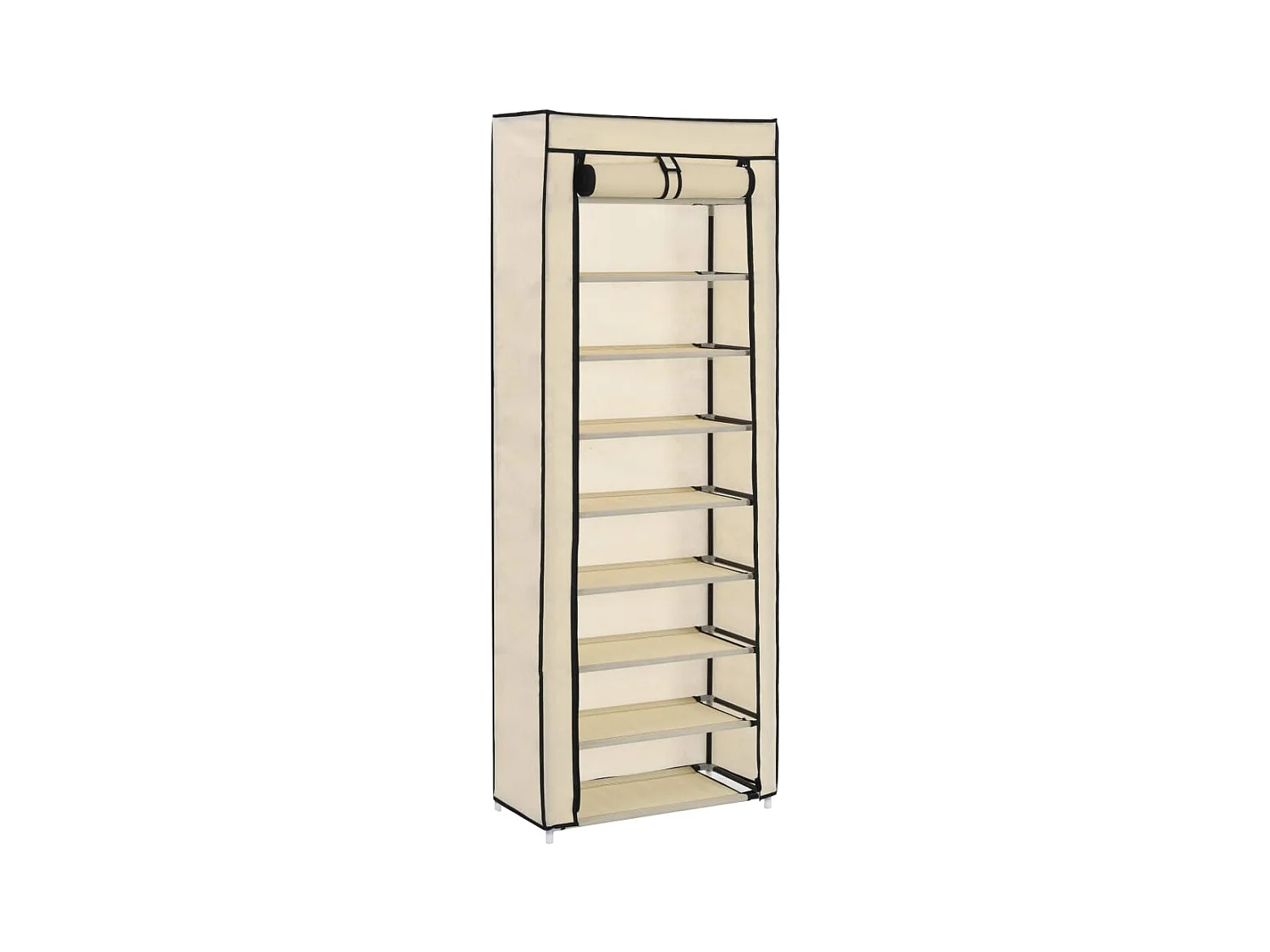 Armoire à chaussures avec housse beige 57x29x162 cm Tissu