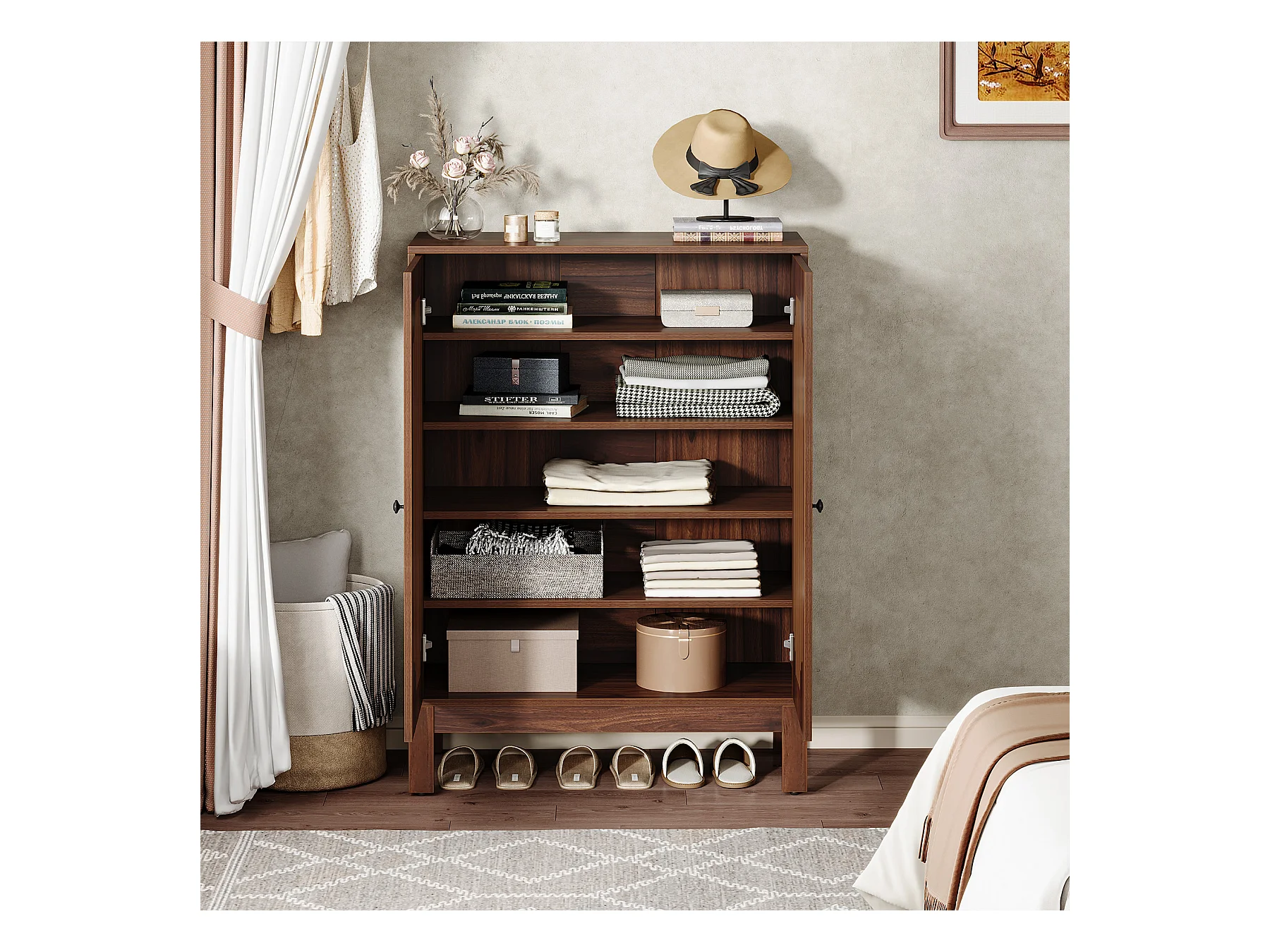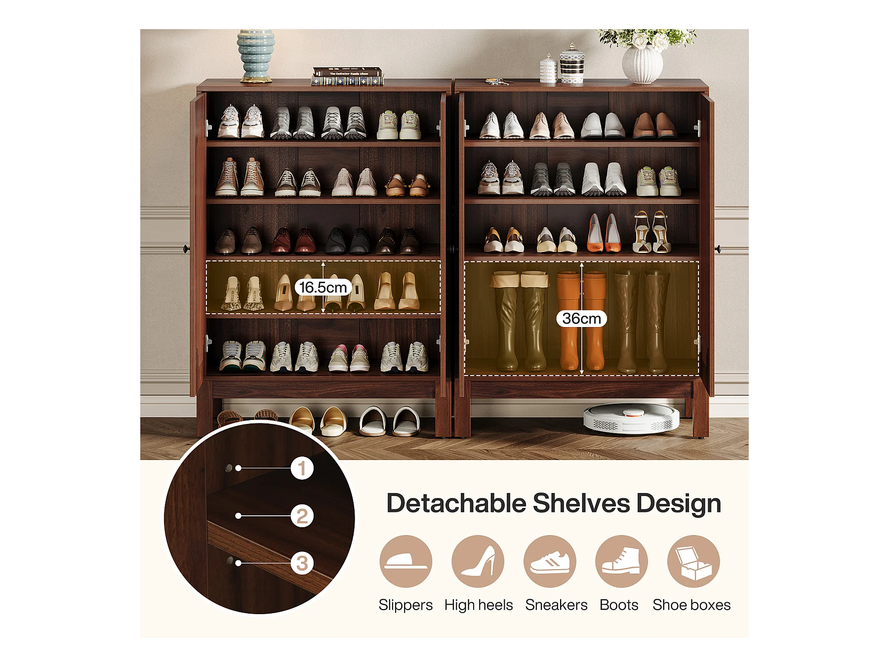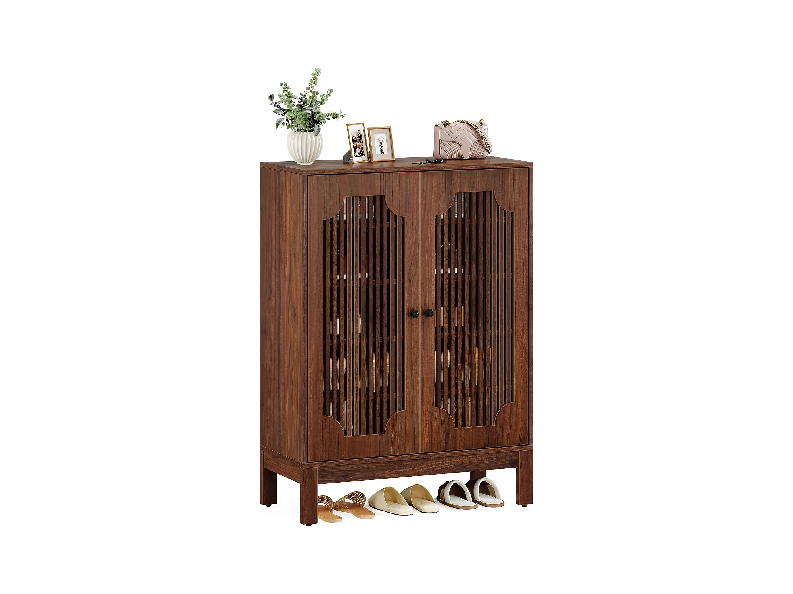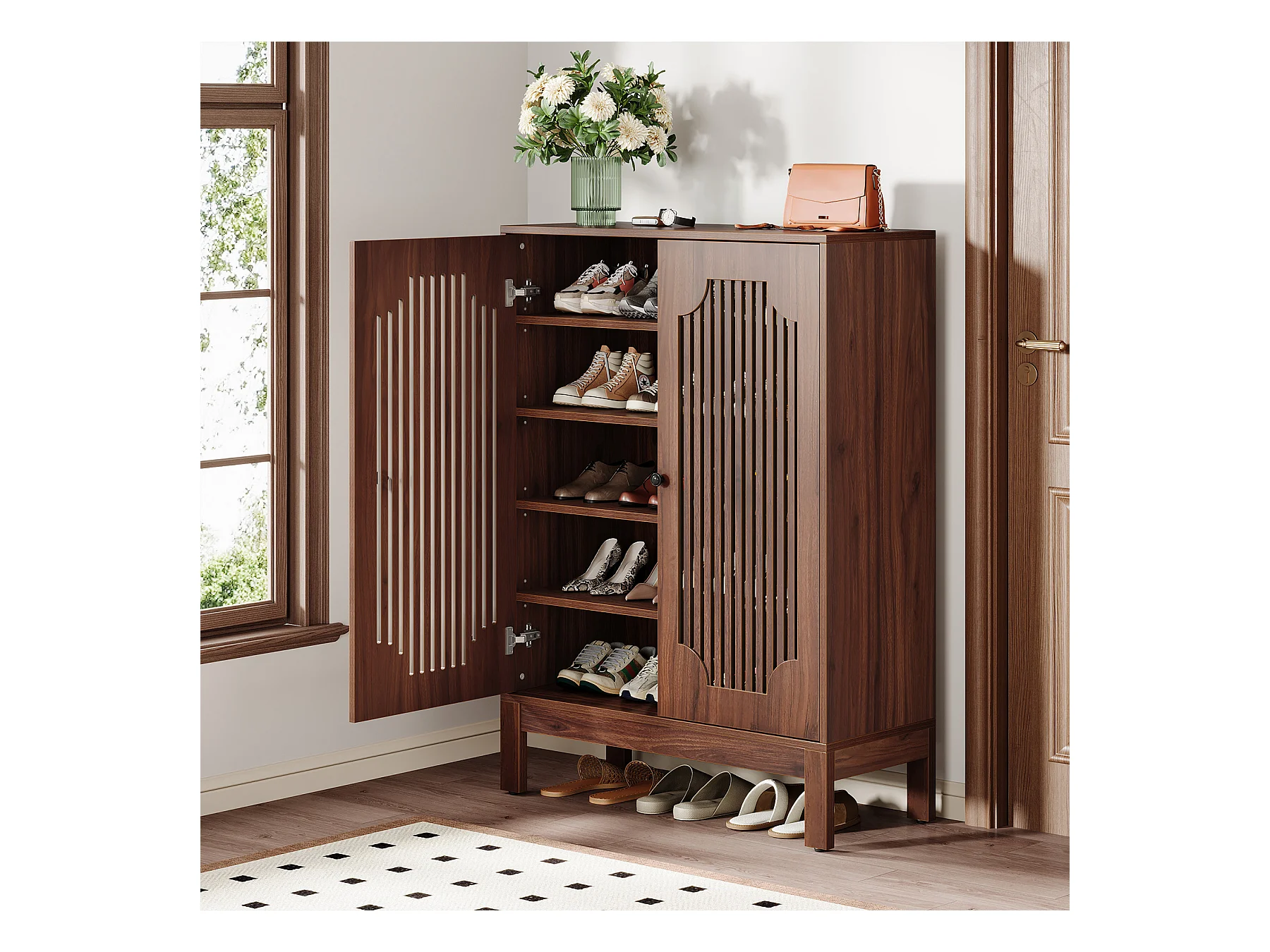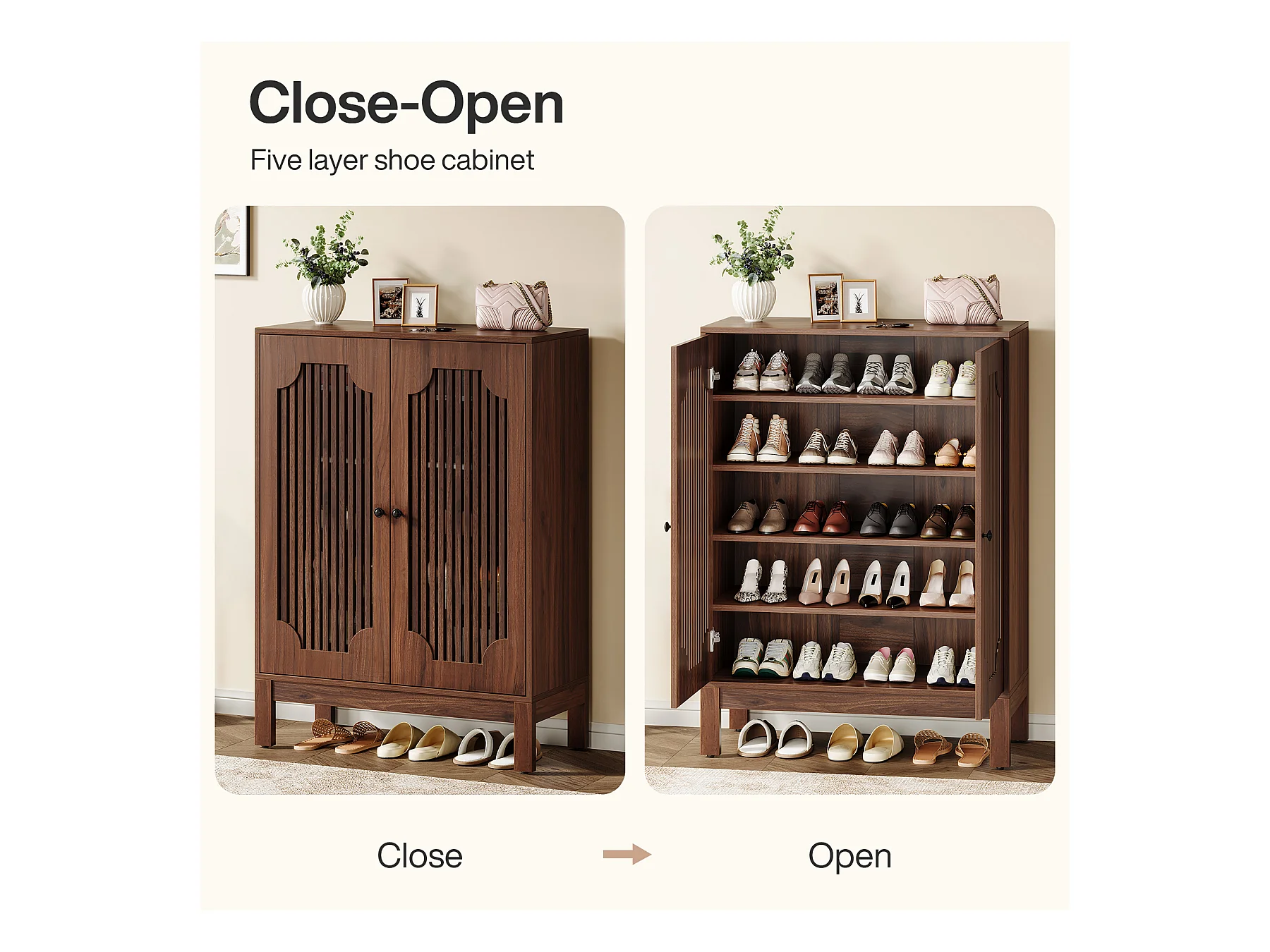 Meuble à chaussures avec portes à lattes, meuble à chaussures à 5 niveaux avec étagères réglables, étagère à chaussures pour 20 paires