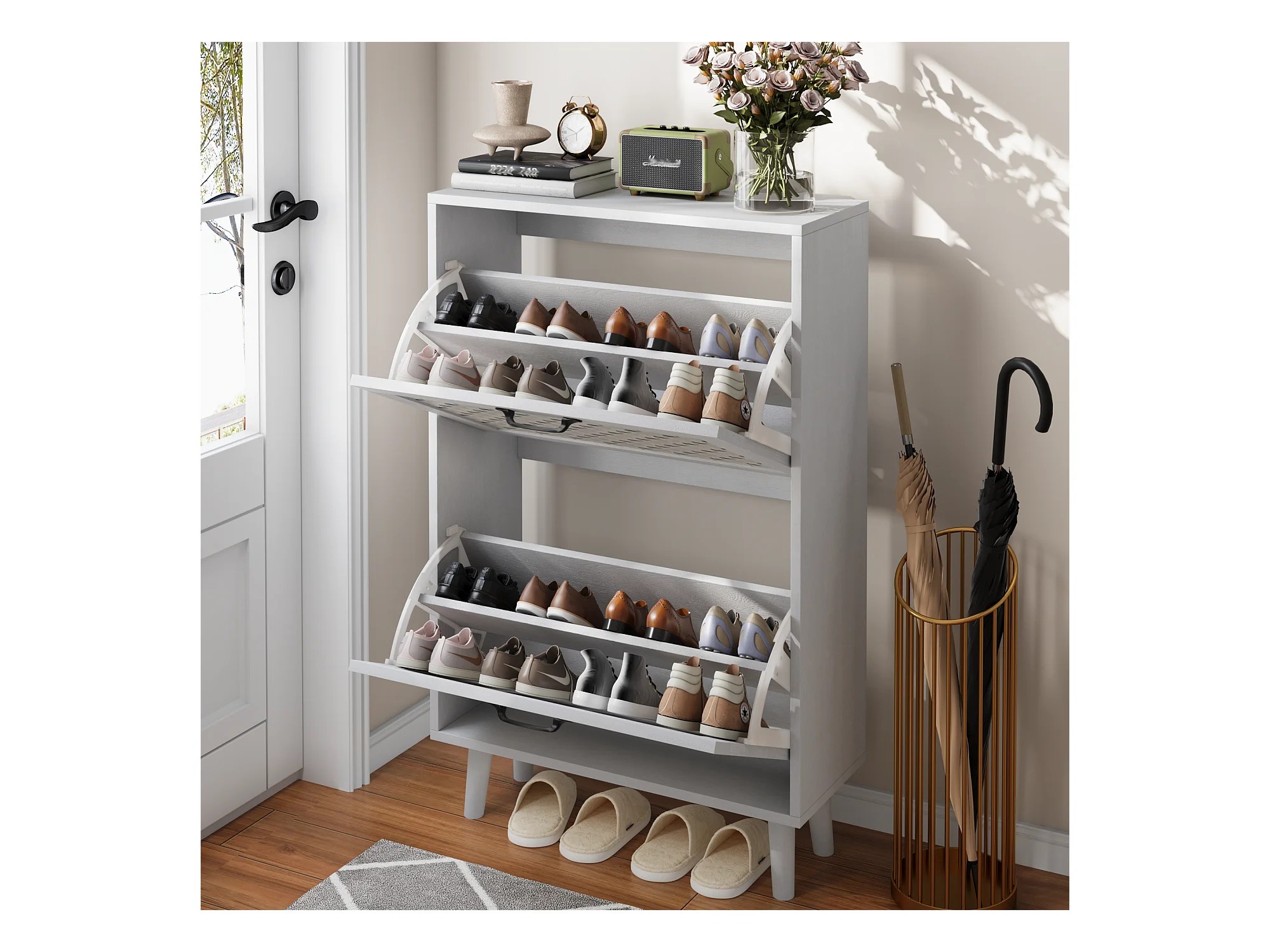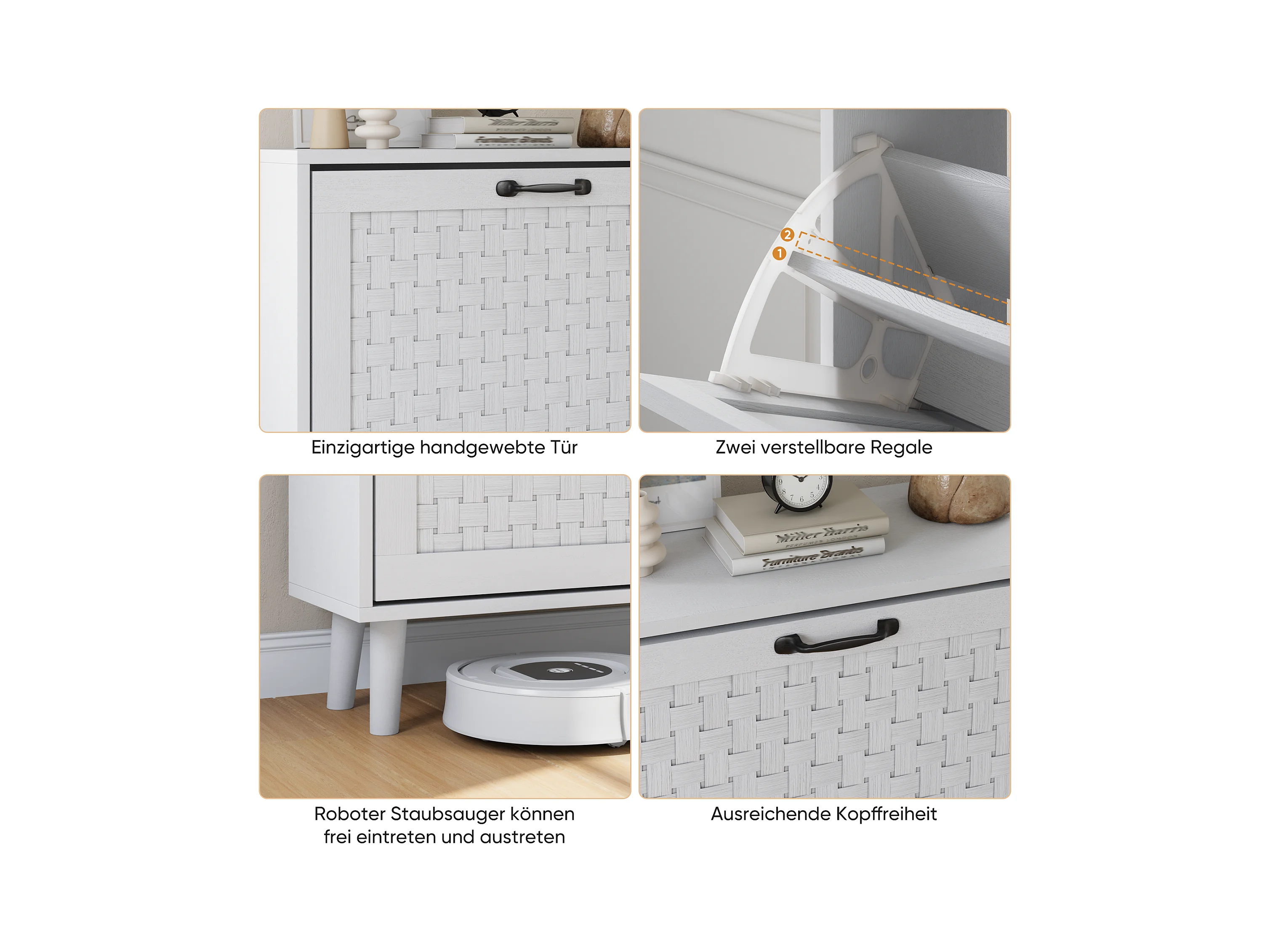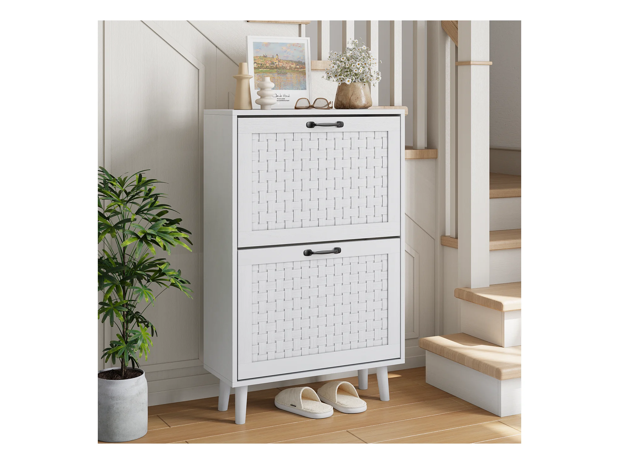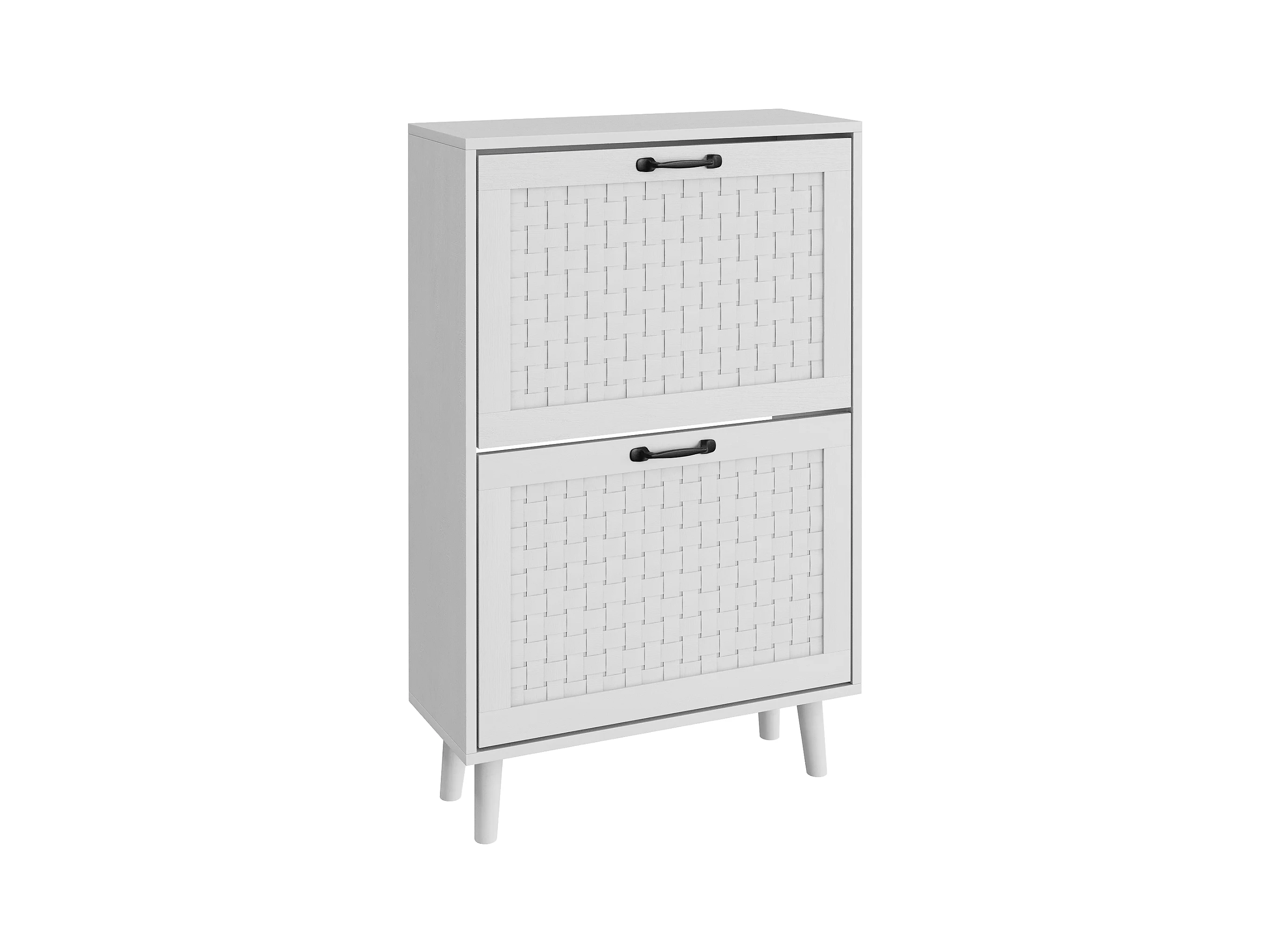 Meuble à chaussures avec tiroirs en rotin, pieds en bois massif, MDF, blanc (60x24,1x94 cm)