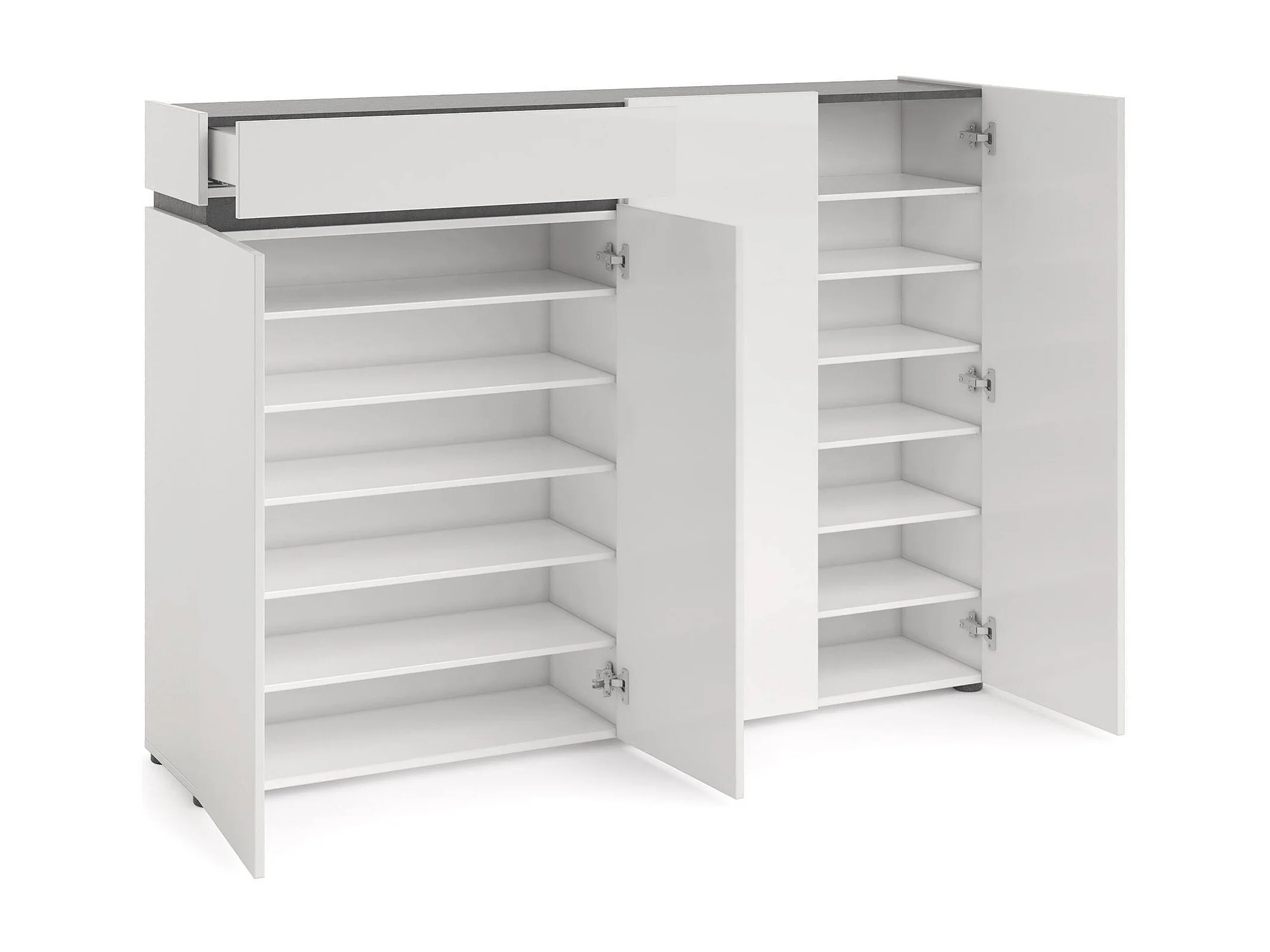 Scarpiera Speranza, Mobile portascarpe, Armadio da ingresso multiuso, Mobiletto per calzature, Made in Italy, 160x34h115 cm, Bianco lucido e Antracite