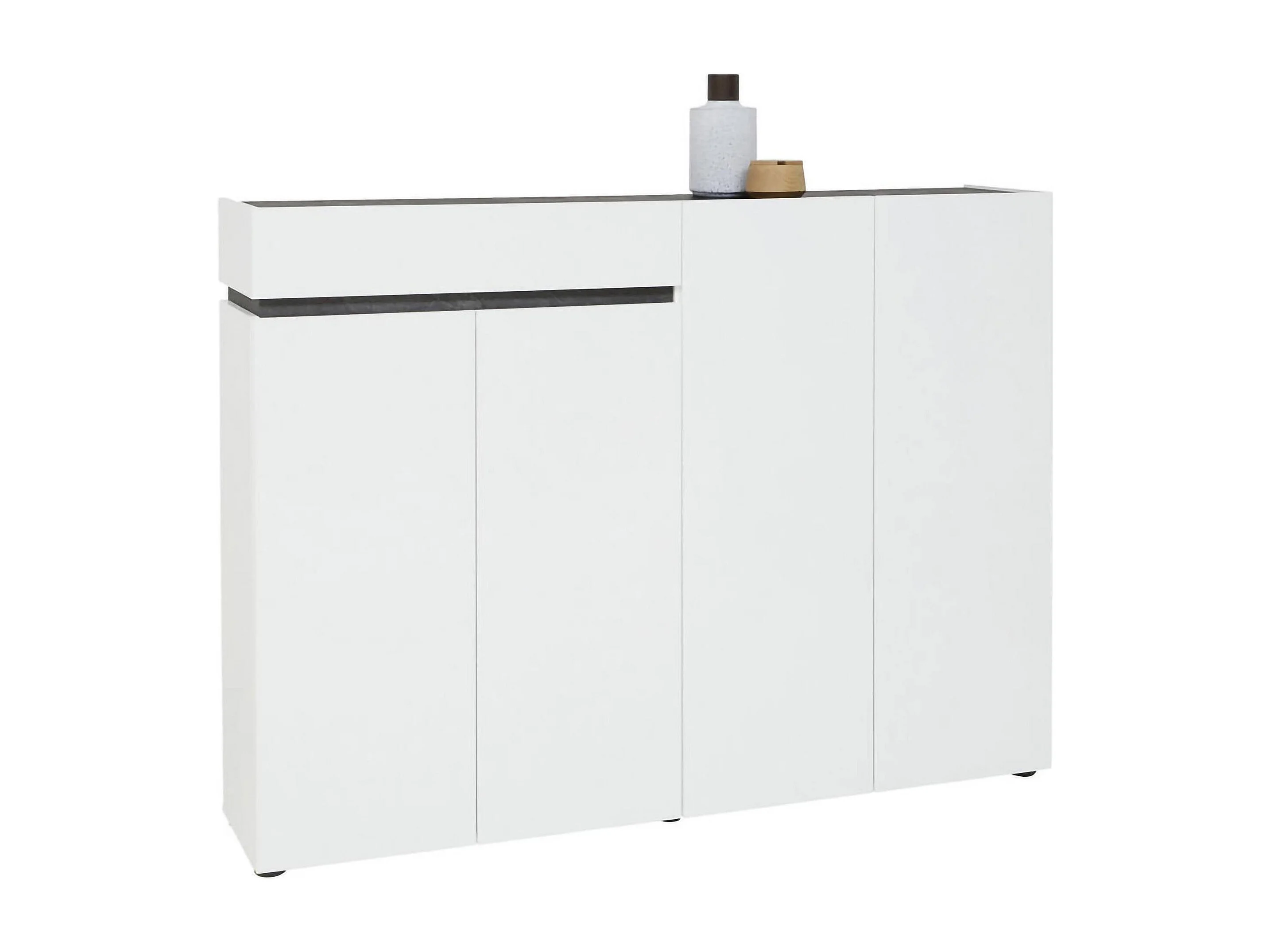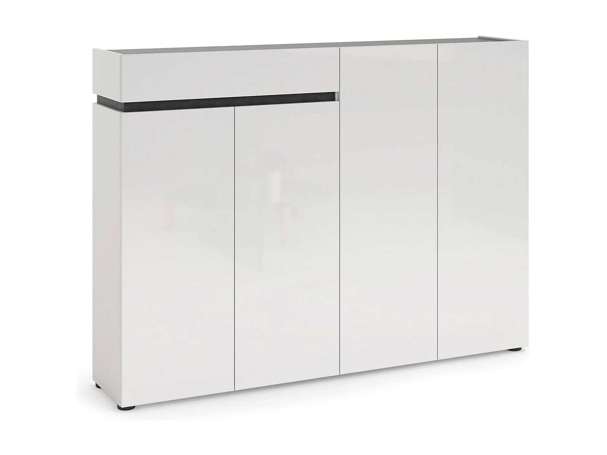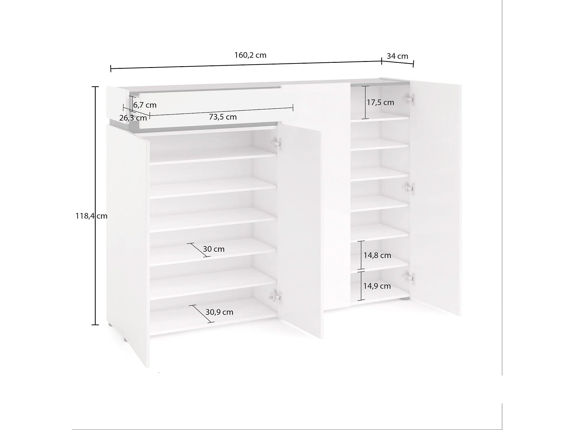 Meuble à chaussures Speranza, 38 paires fabriqué en Italie, 160x34x115h cm blanc laqué, 1 tiroir, 10 étagères
