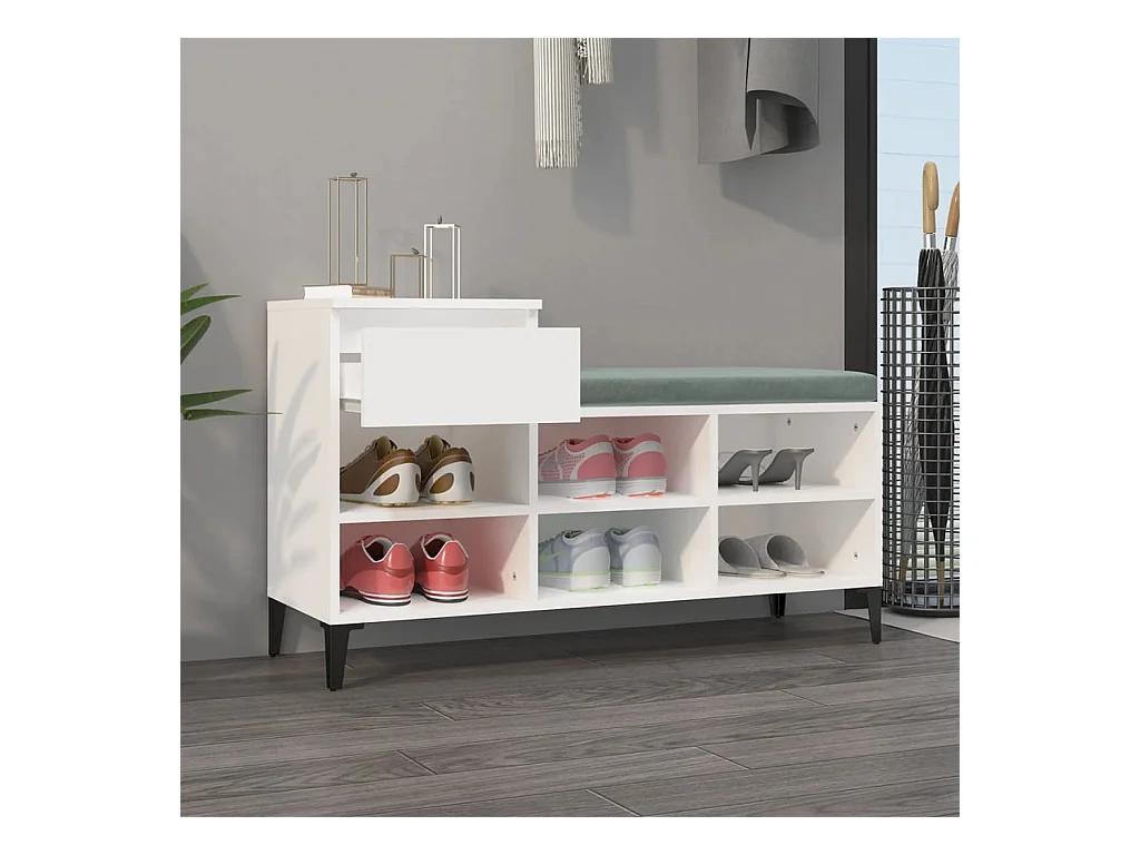 Meuble à chaussure Blanc brillant 102x36x60 cm Bois ingénierie FR42055