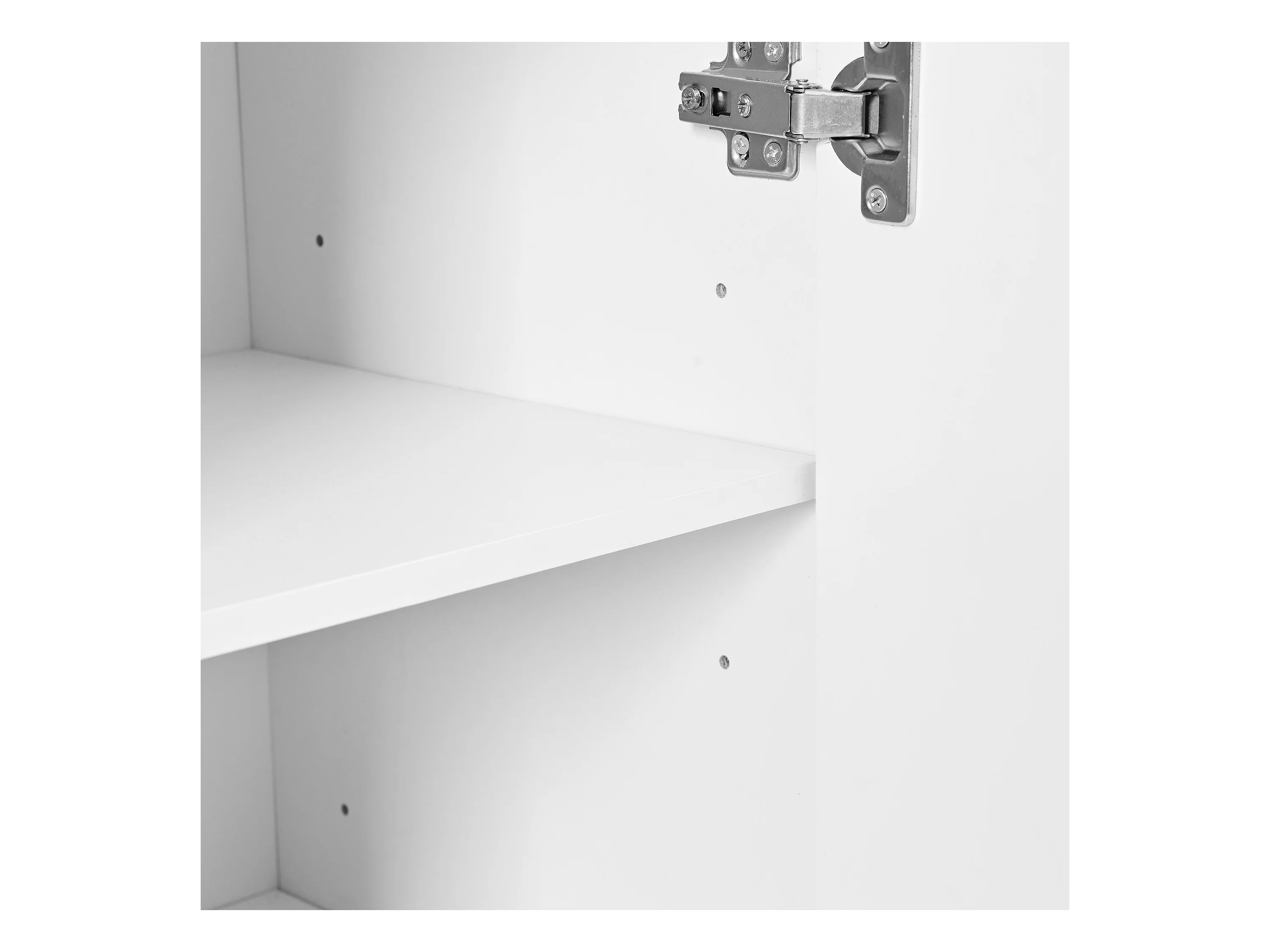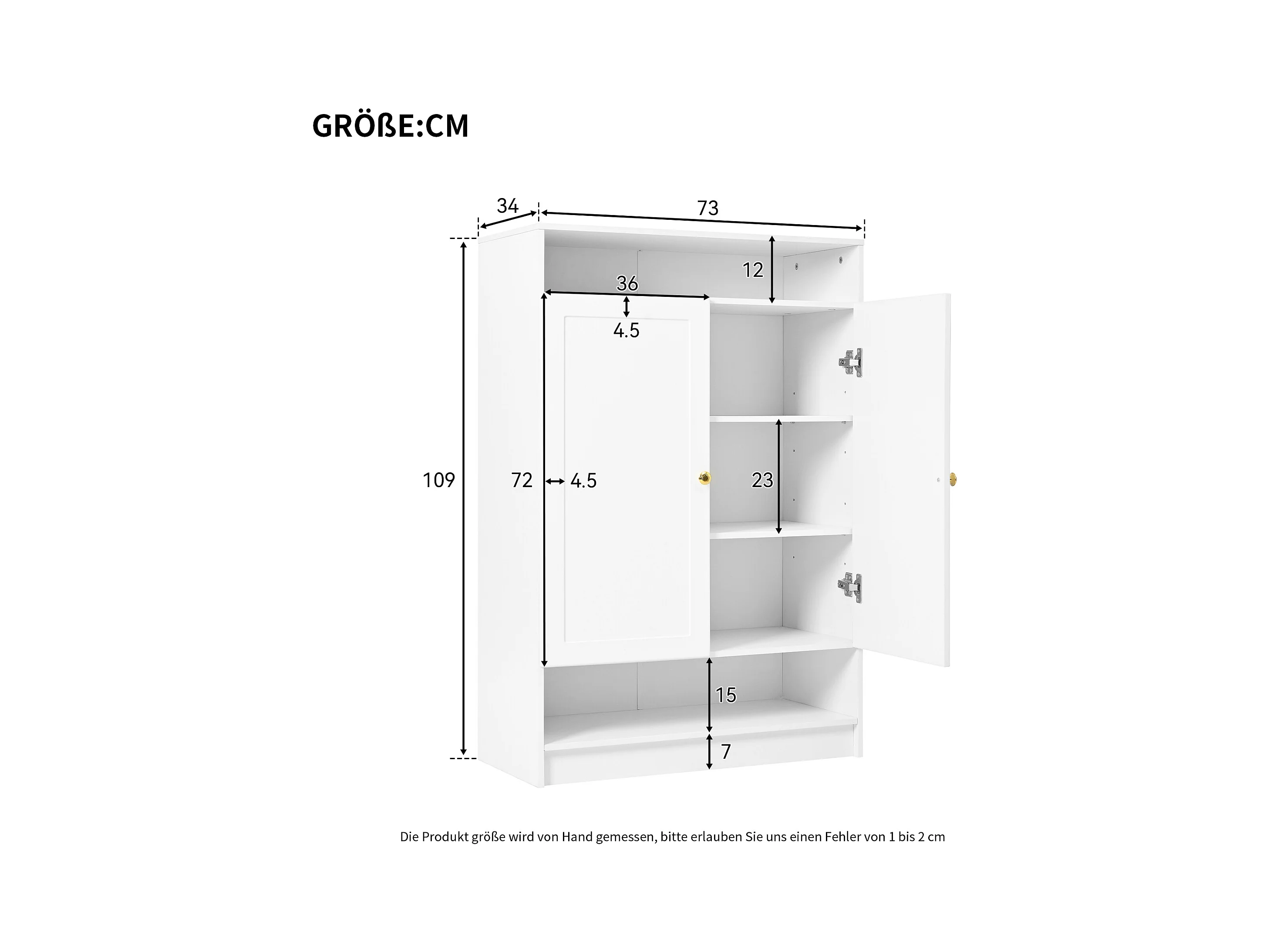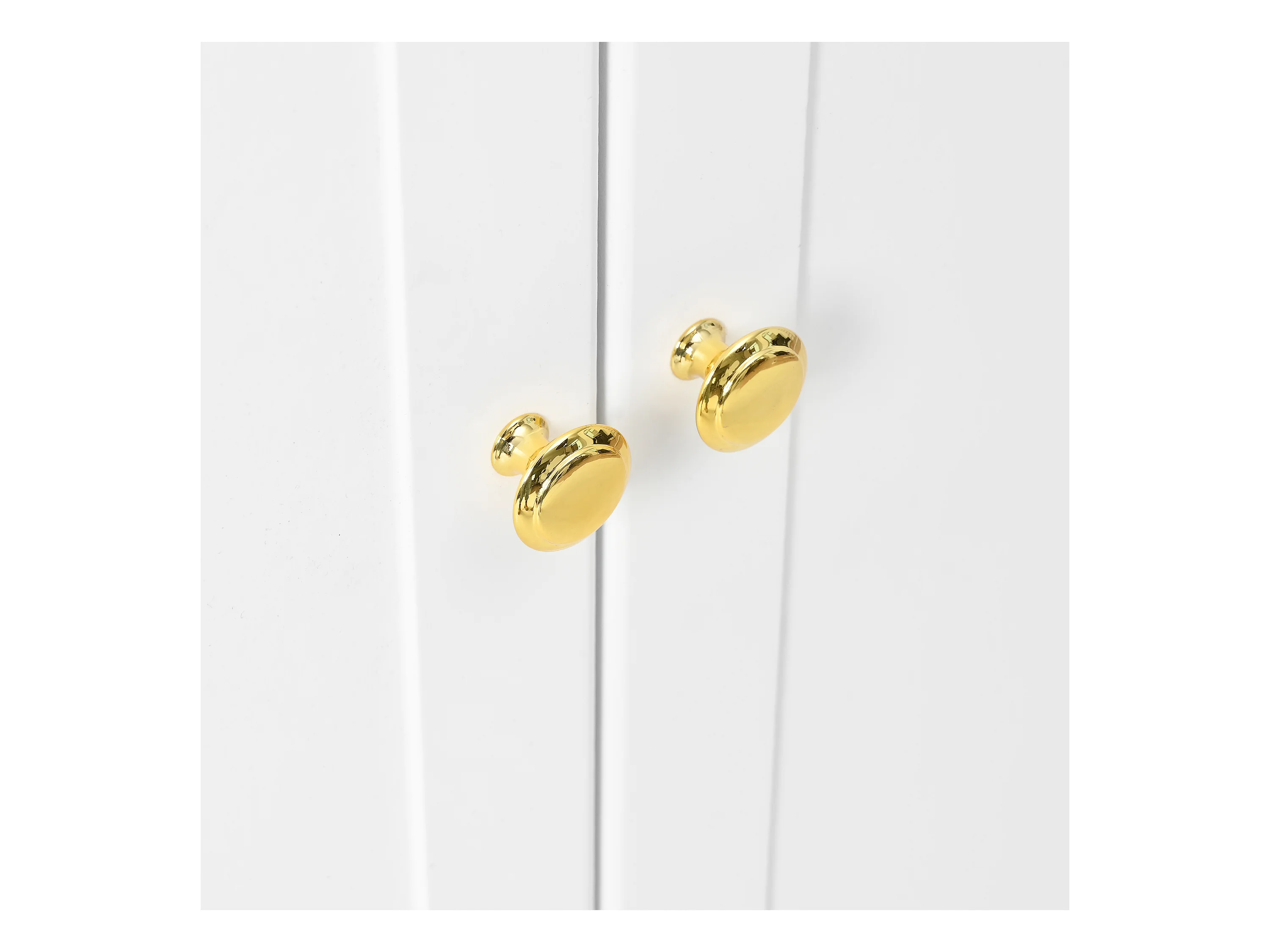 Meuble à chaussures blanc avec 2 portes et étagères réglables, poignées dorées - pour salon et entrée