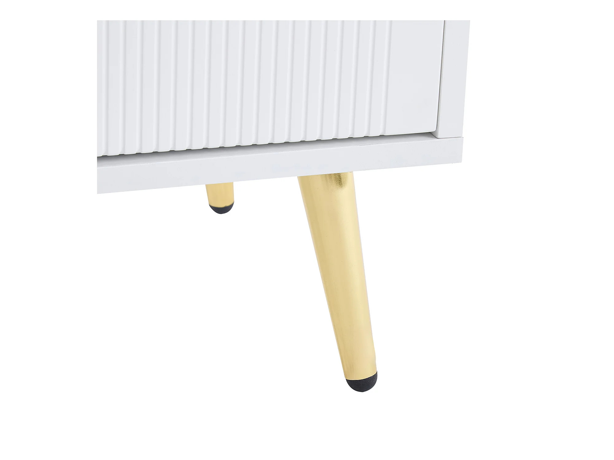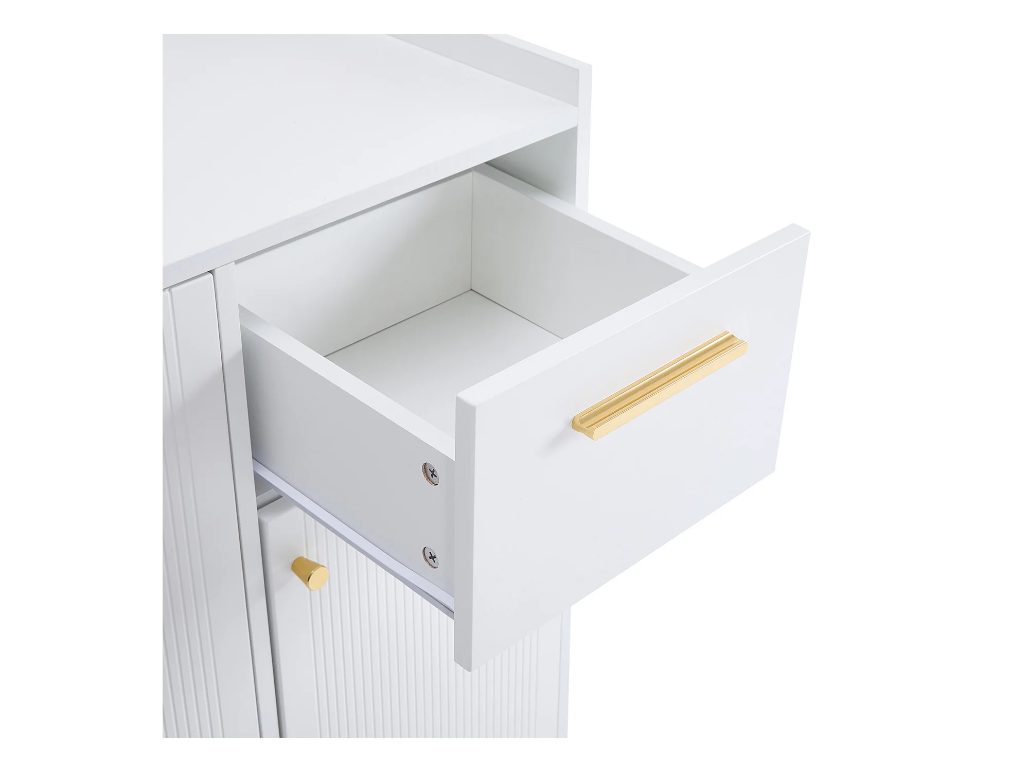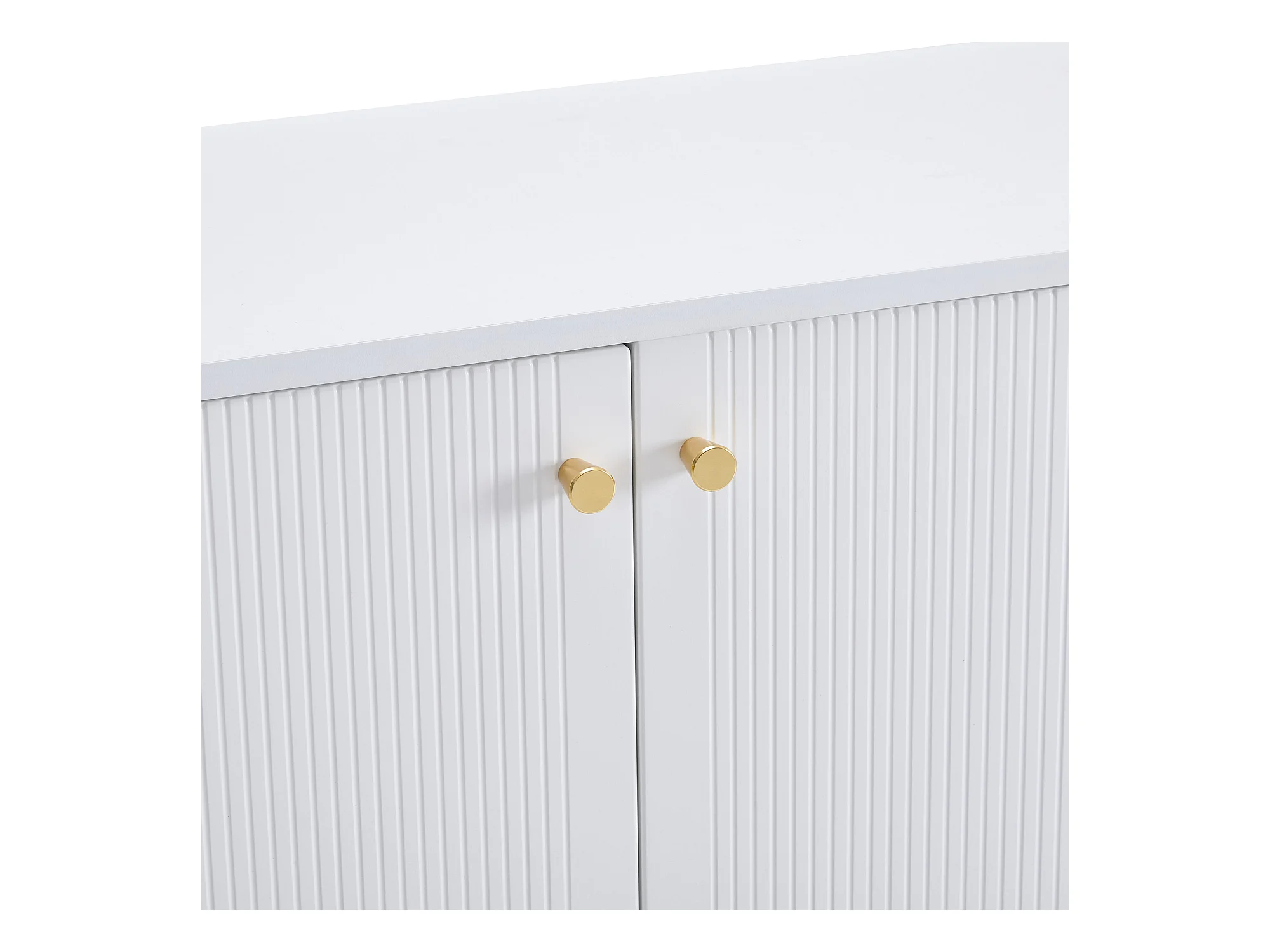 Meuble à chaussures blanc avec 2 tiroirs de rangement et 4 portes, poignées et pieds dorés