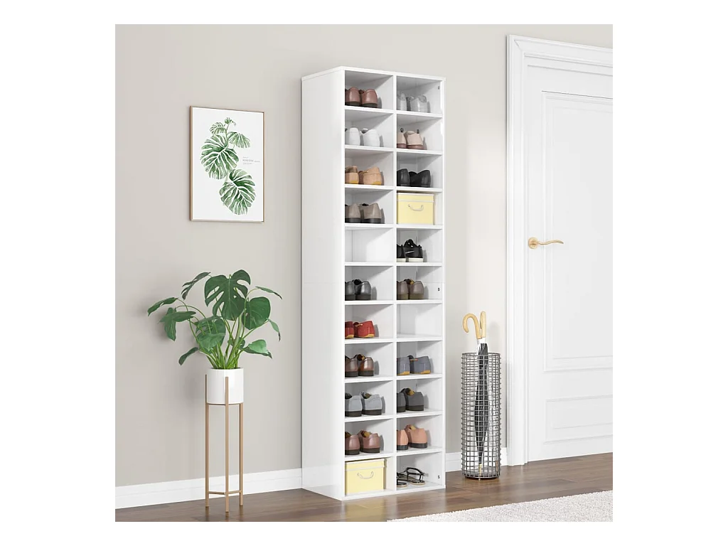 Meuble à chaussures blanc brillant 54x34x183cm bois ingénierie FR29159