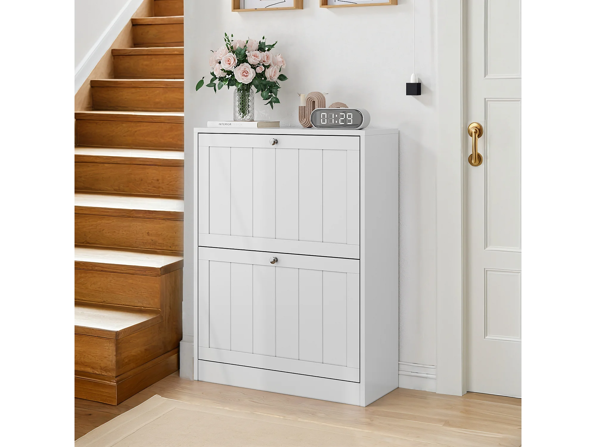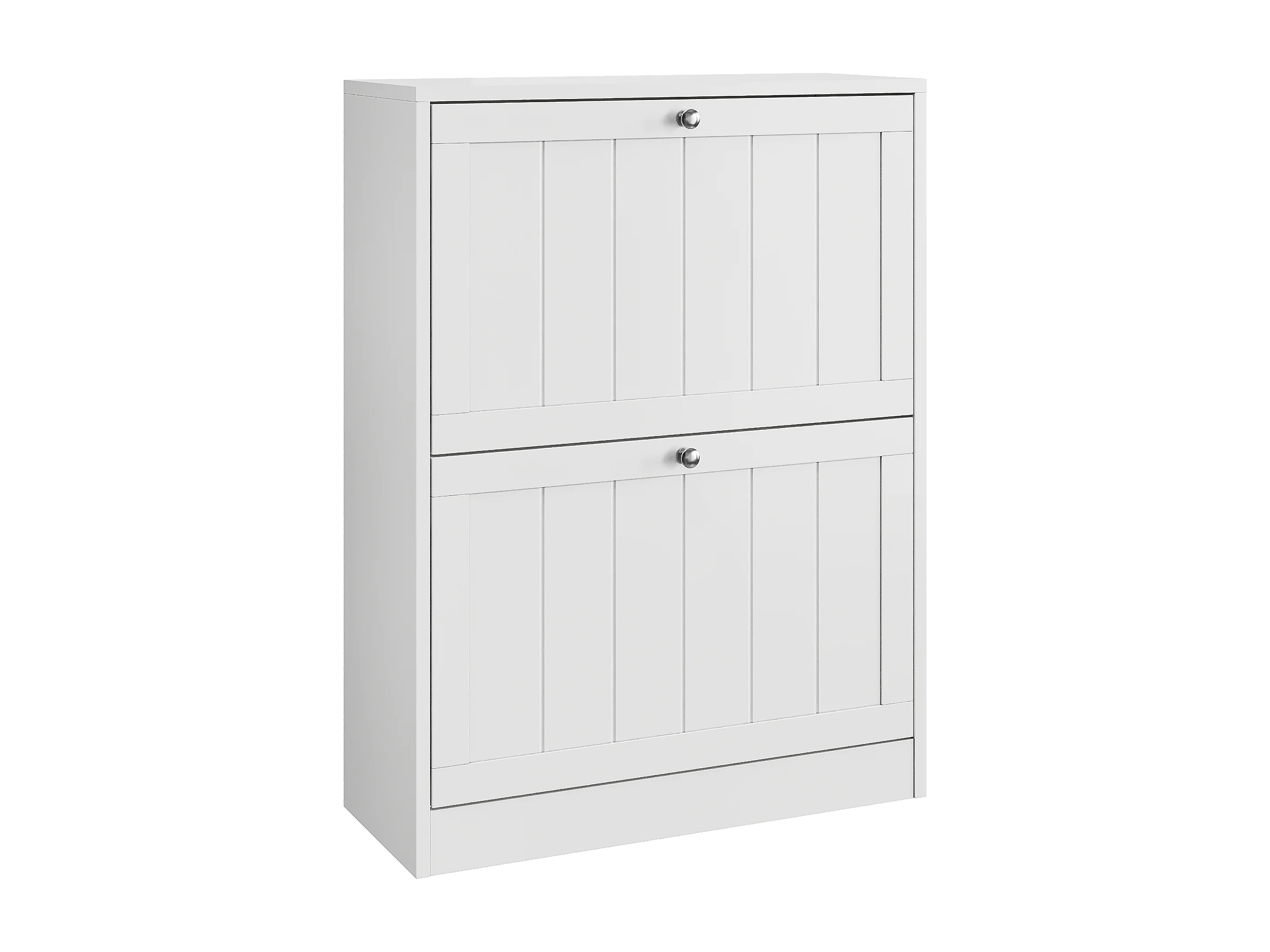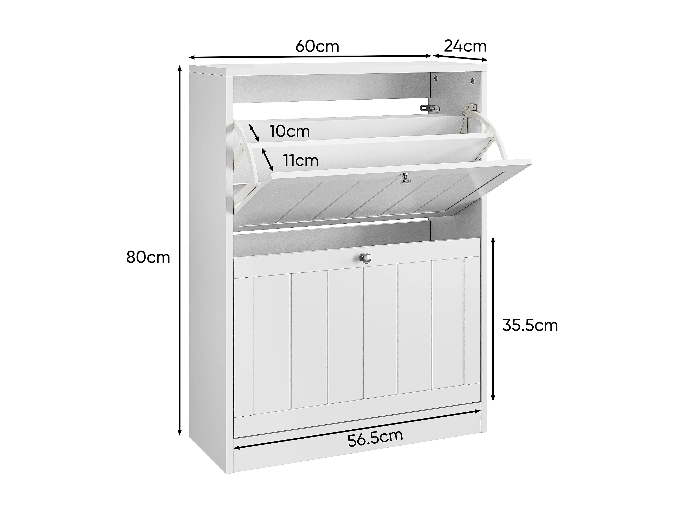 Meuble à chaussures blanc, design moderne Mid-Century, avec 2 tiroirs rabattables, idéal pour entrée et couloir (60x24x80 cm)