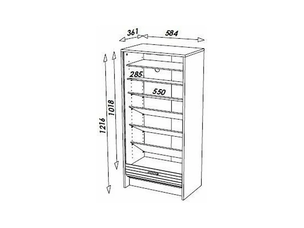 Meuble à chaussures chêne naturel rideau Bottines 21 paires Shoot 58cm