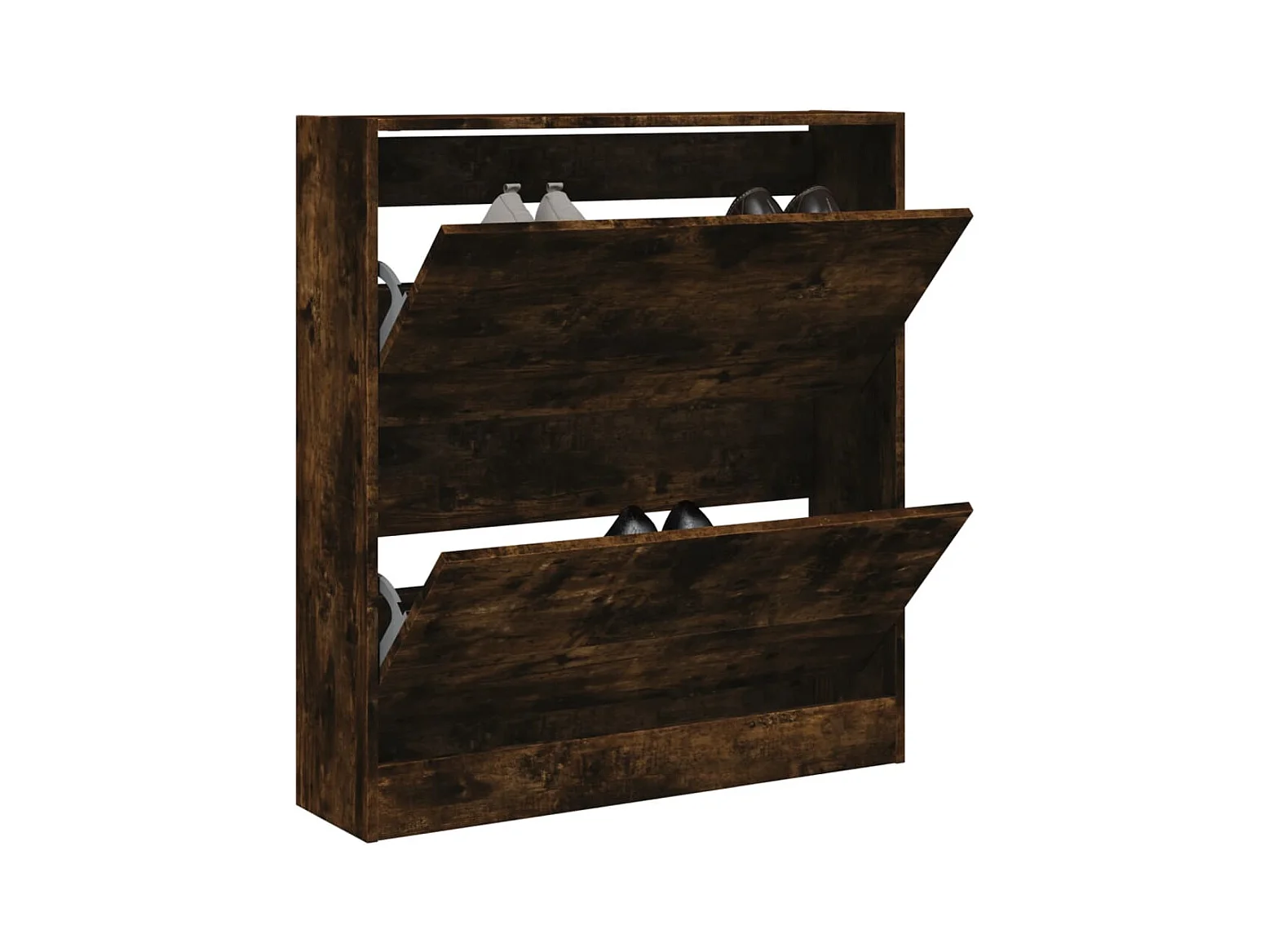 Meuble à chaussures 2 tiroirs rabattables chêne fumé FR70585