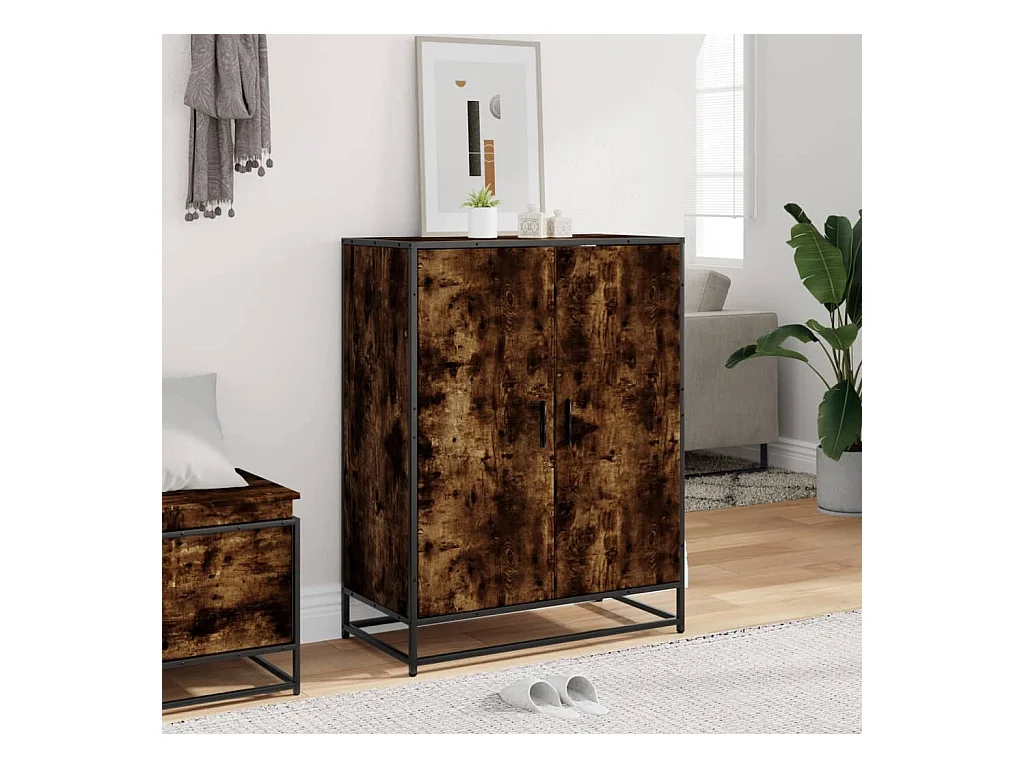 Meuble à chaussures chêne fumé bois d'ingénierie et métal