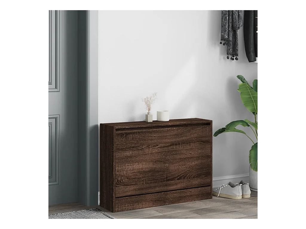 Meuble à chaussures 2 tiroirs rabattables chêne fumé FR70585