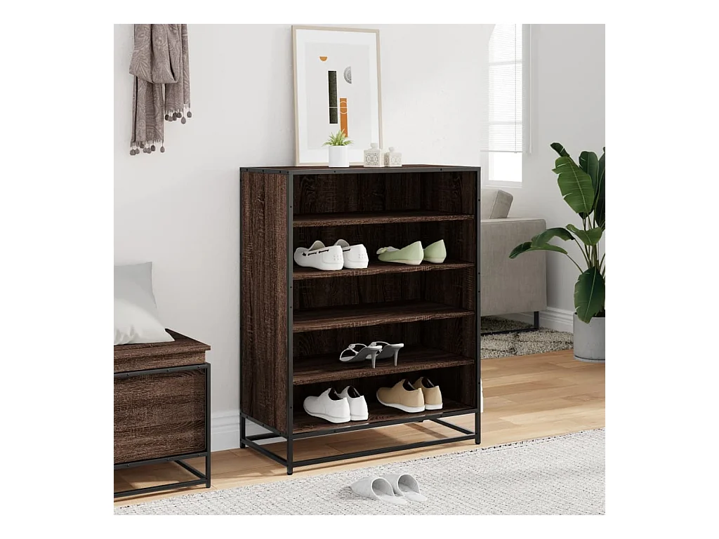 Meuble à chaussures chêne fumé bois d'ingénierie et métal