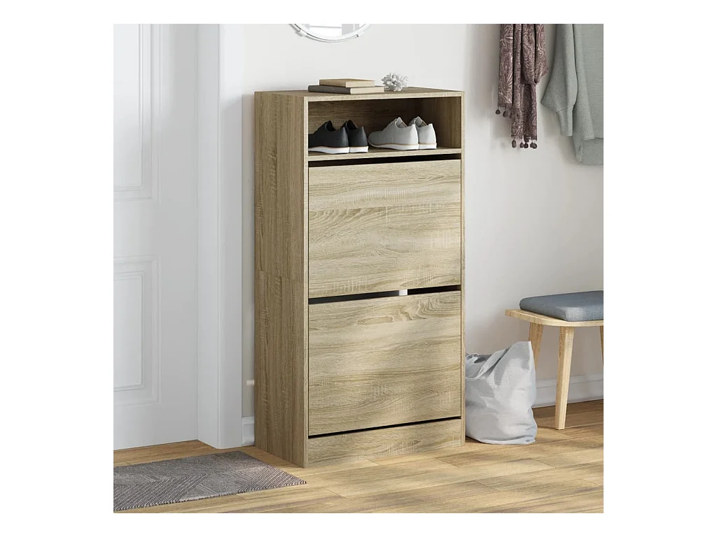 Meuble à chaussures 2 tiroirs rabattables chêne sonoma FR62008