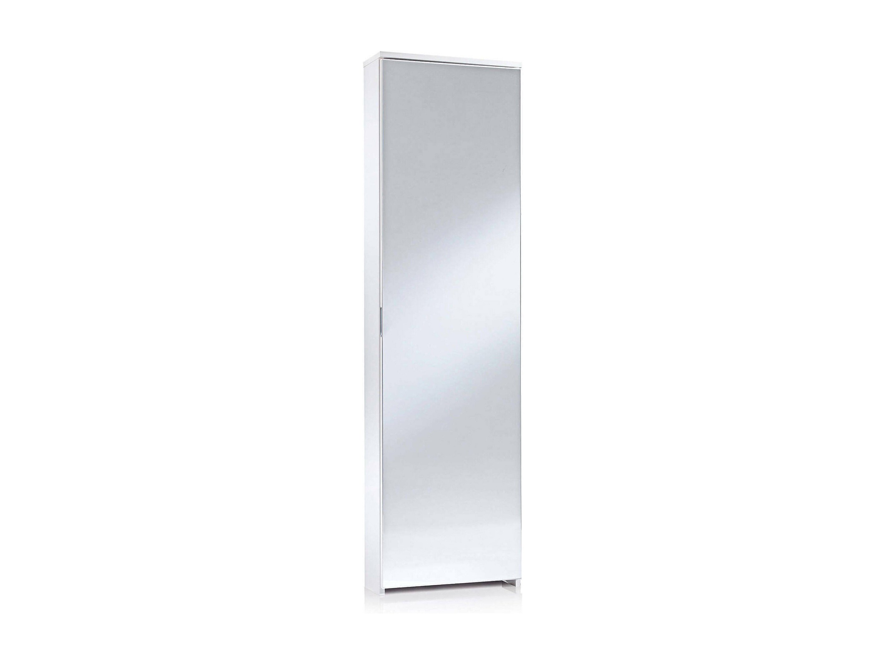 Étagère à chaussures Zevola, Étagère à chaussures d'entrée peu encombrante, Meuble à chaussures avec 1 porte miroir, 50x27h186 cm, Blanc