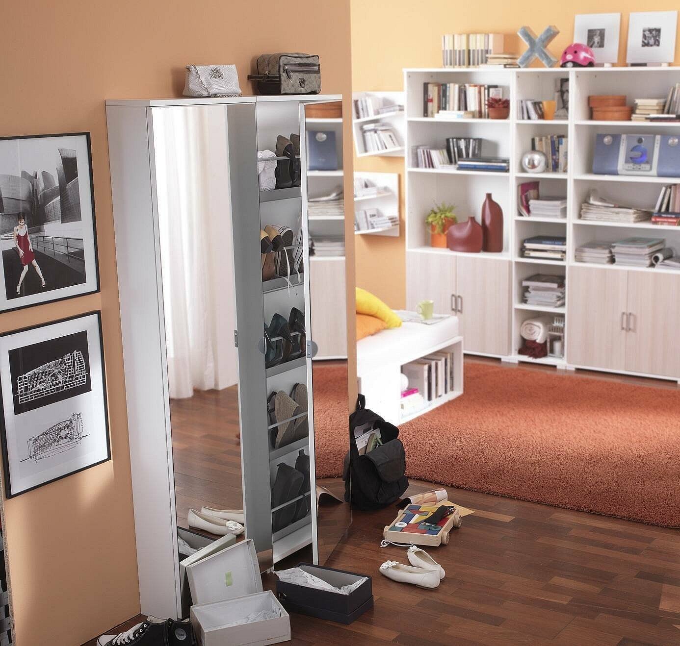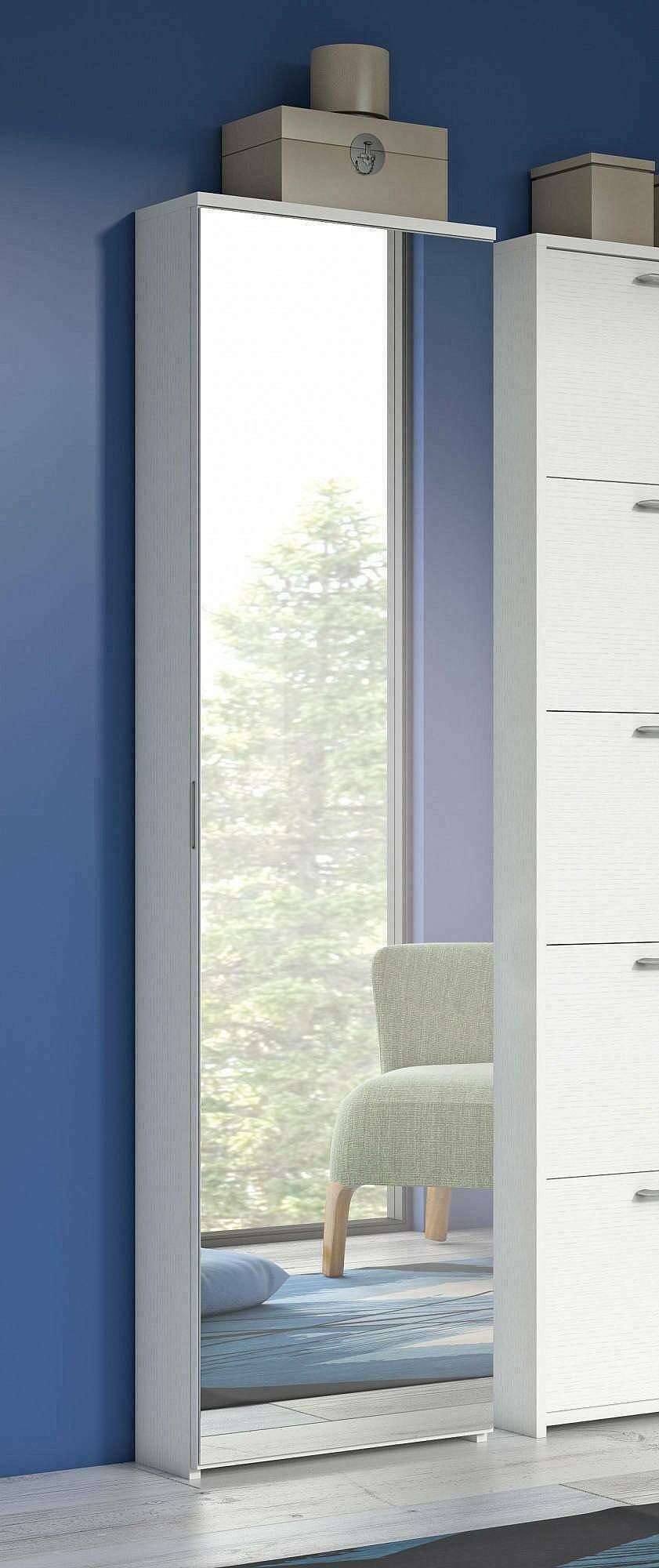 Étagère à chaussures Ciclamino, Meuble d'entrée polyvalent avec porte miroir, Meuble à chaussures moderne avec 5 étagères, 100% Made in Italy, 50x18h178 cm, Blanc