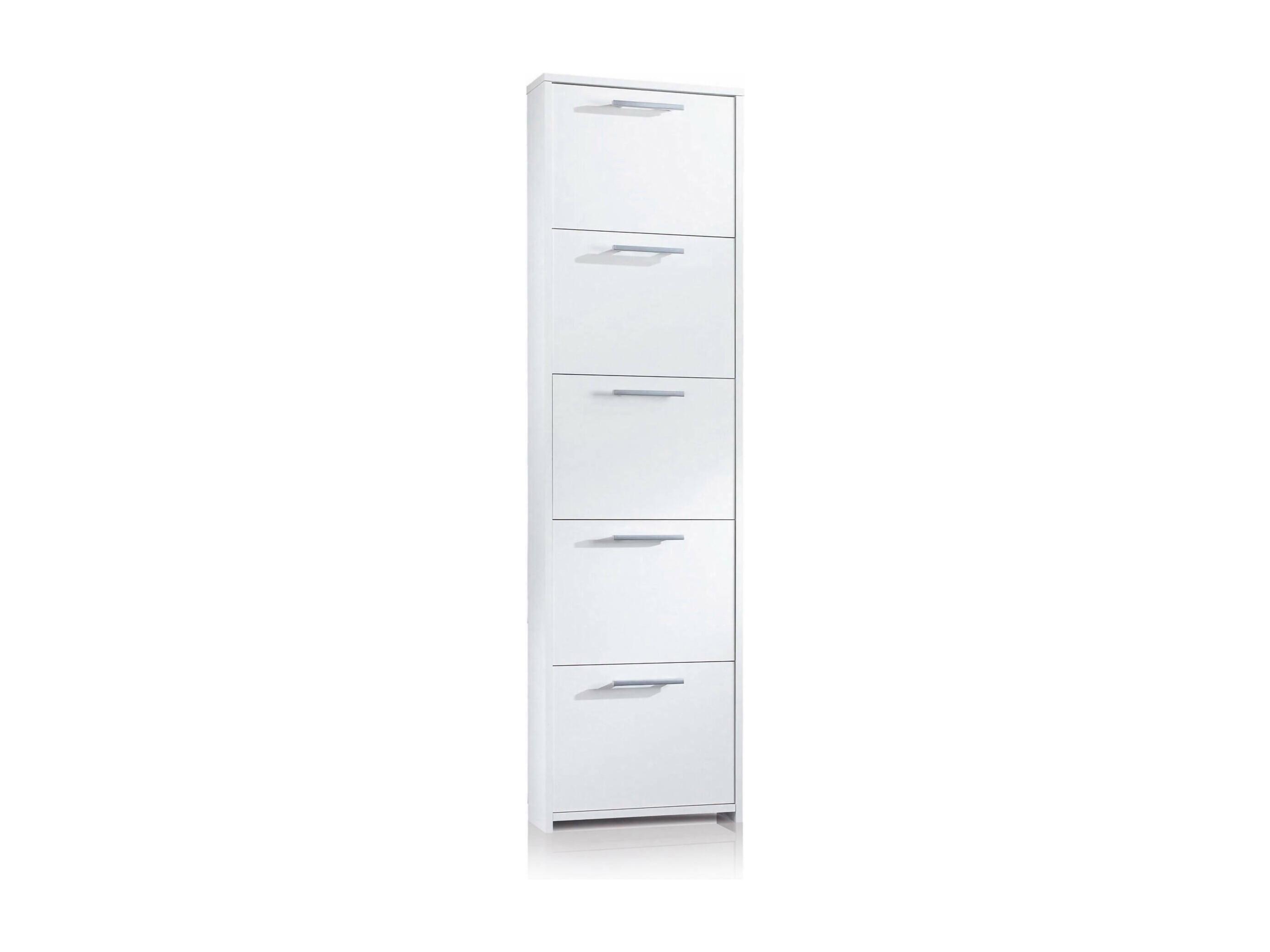 Meuble à chaussures Danobile, Meuble à chaussures avec 5 portes battantes, Range-chaussures d'entrée haute, Range-chaussures moderne, 70x17h180 cm, Blanc brillant