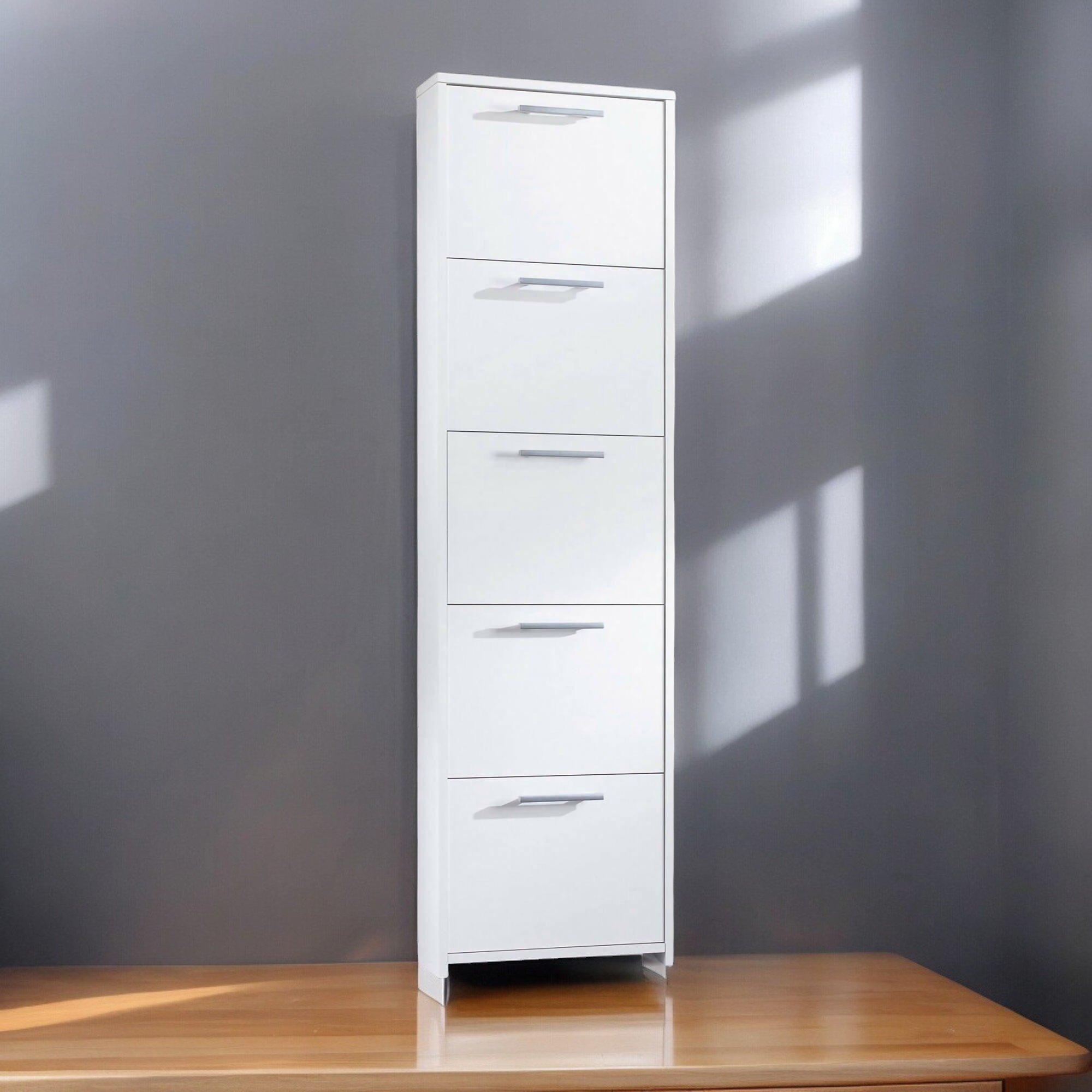 Étagère à chaussures Dbusi, Meuble d'entrée polyvalent avec 5 portes, Armoire à chaussures moderne avec étagères, 100% Made in Italy, 50x18h178 cm, Blanc