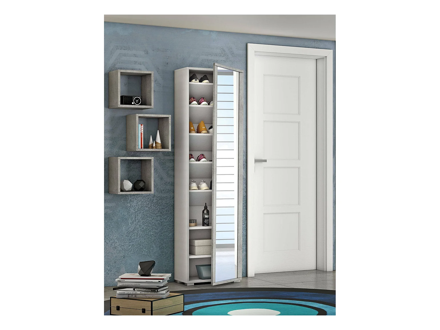 Étagère à chaussures Dpagani, Étagère à chaussures d'entrée peu encombrante, Meuble à chaussures avec 1 porte miroir, 50x27h186 cm, Blanc