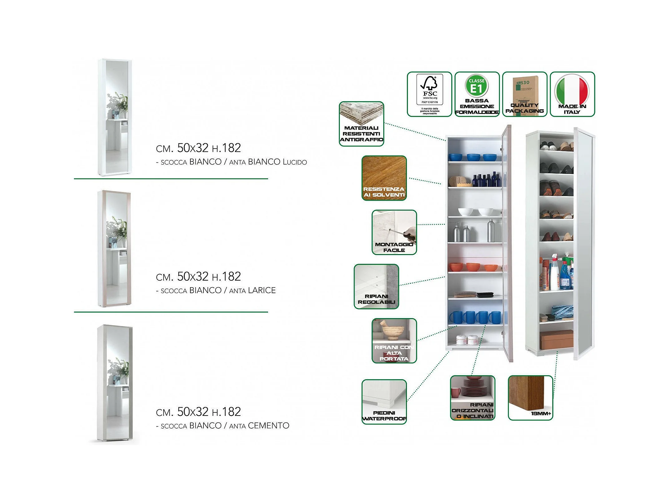 Étagère à chaussures Dgratto, Meuble d'entrée polyvalent avec 5 portes pliantes, Meuble à chaussures moderne, 100% Made in Italy, 67x18h184 cm, Blanc