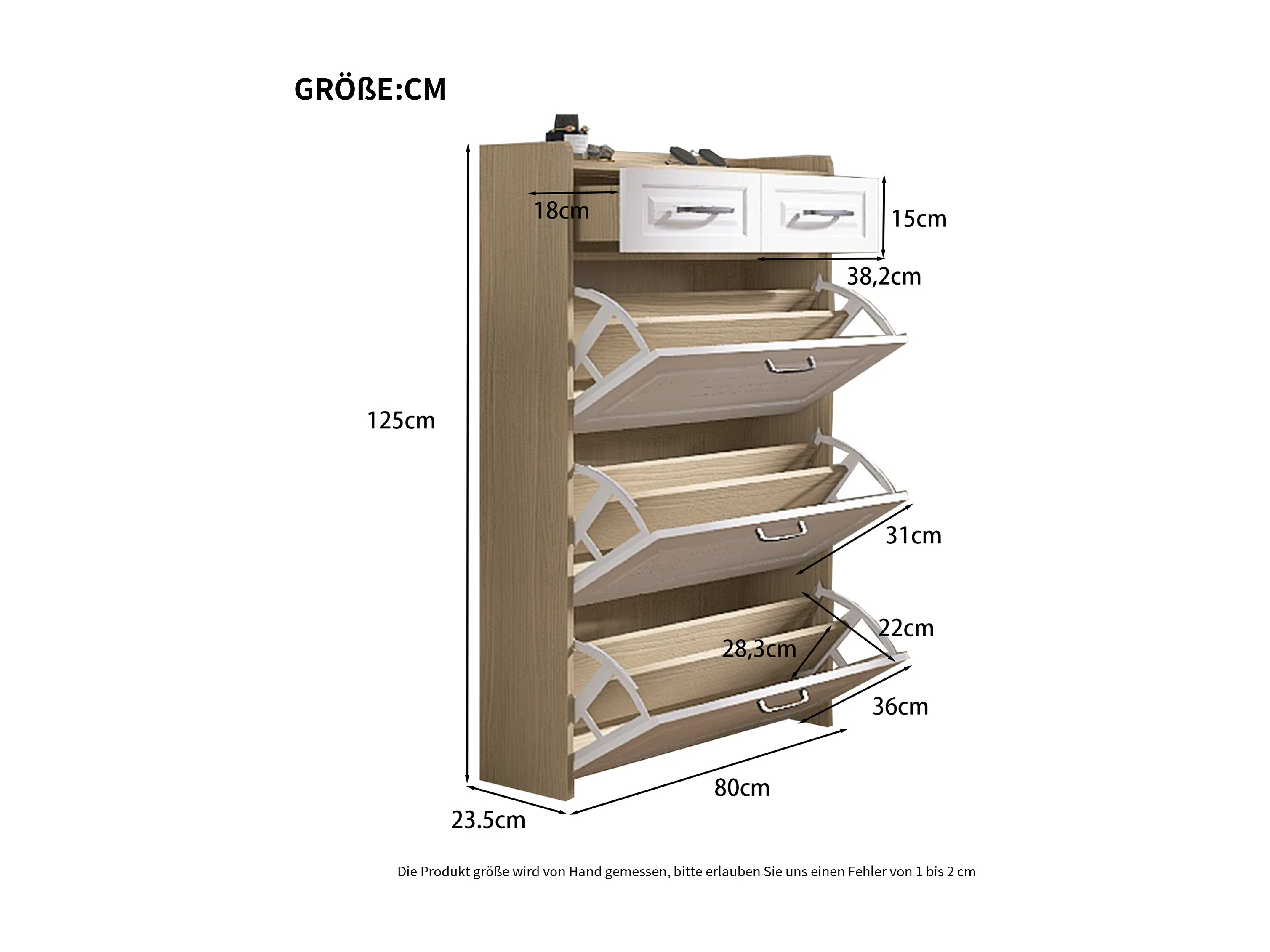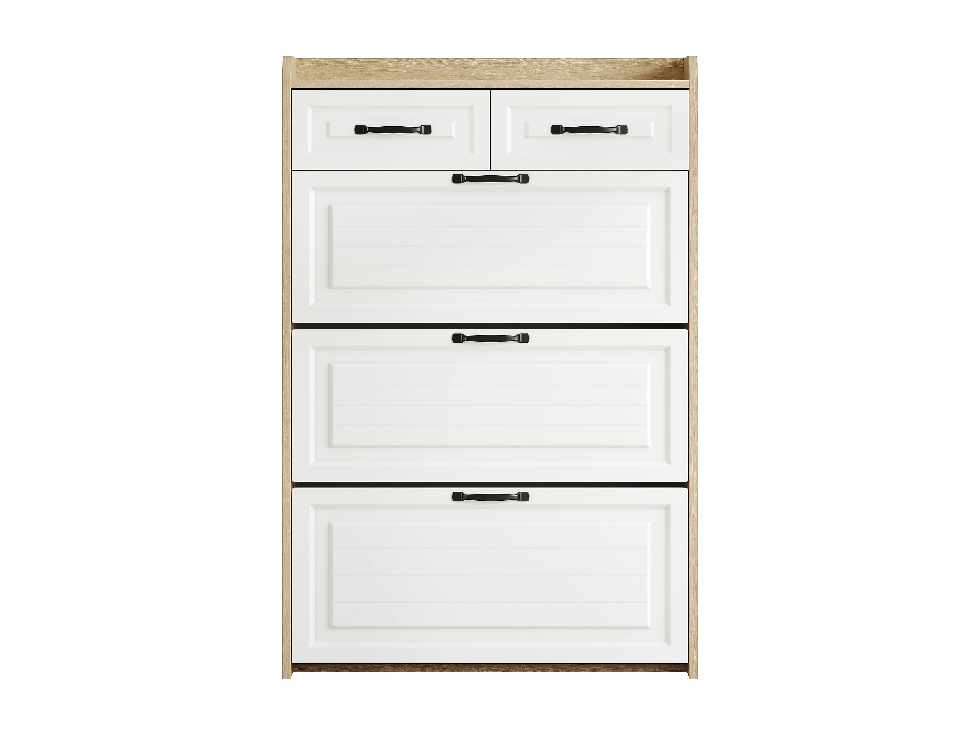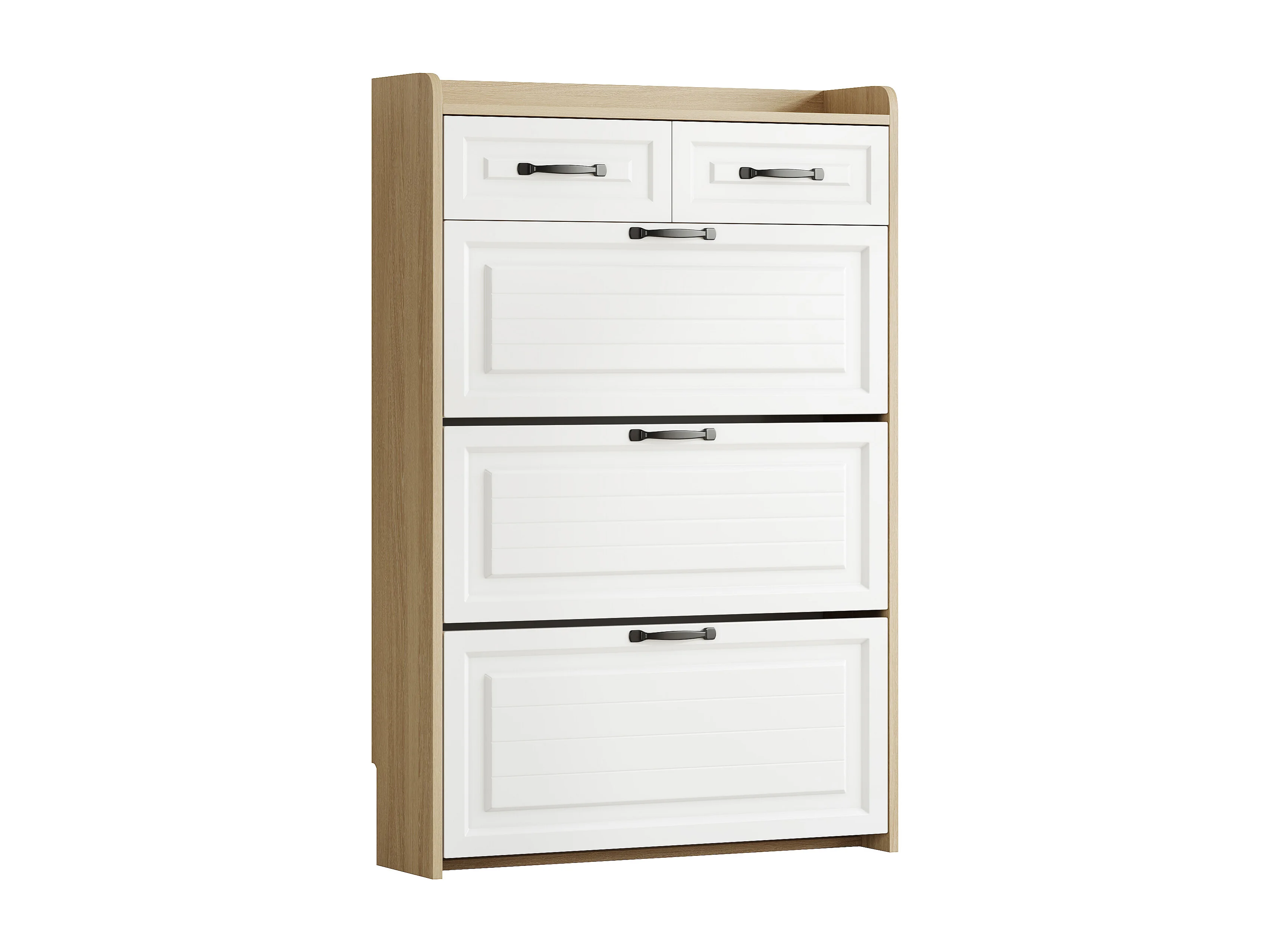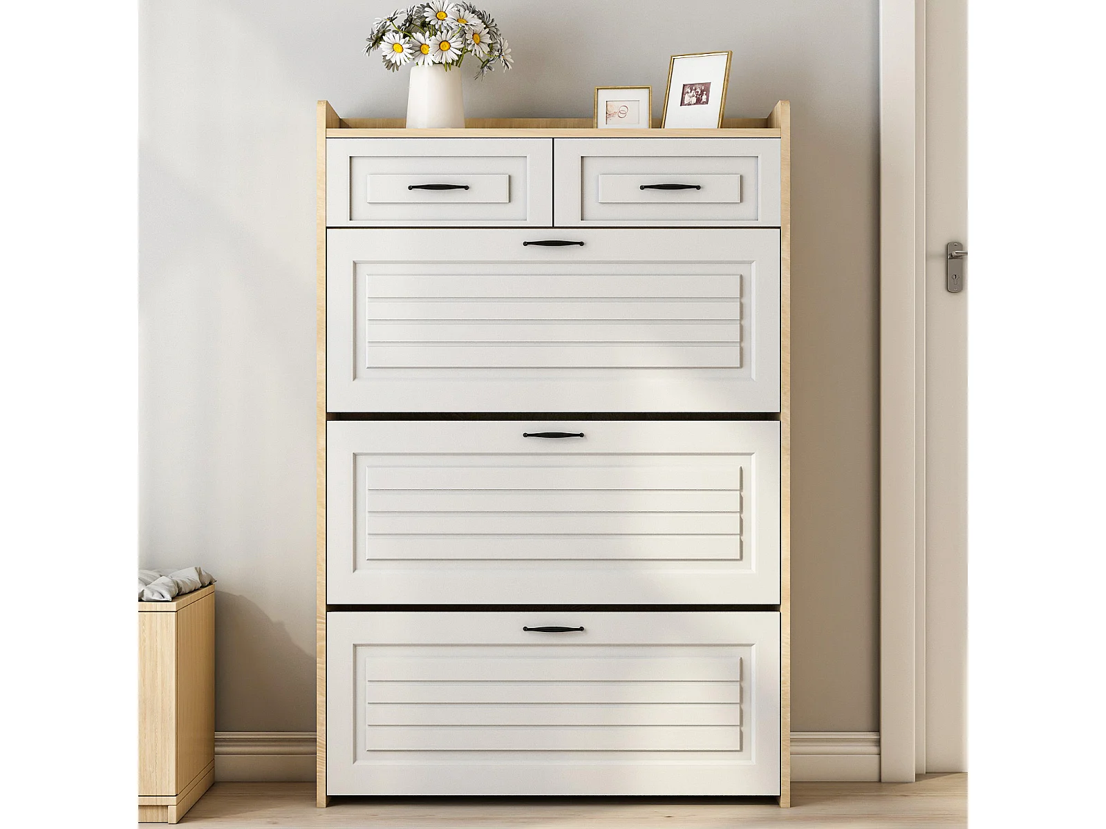 Meuble à chaussures d'entrée avec 3 portes à abattant et 2 tiroirs - blanc et naturel