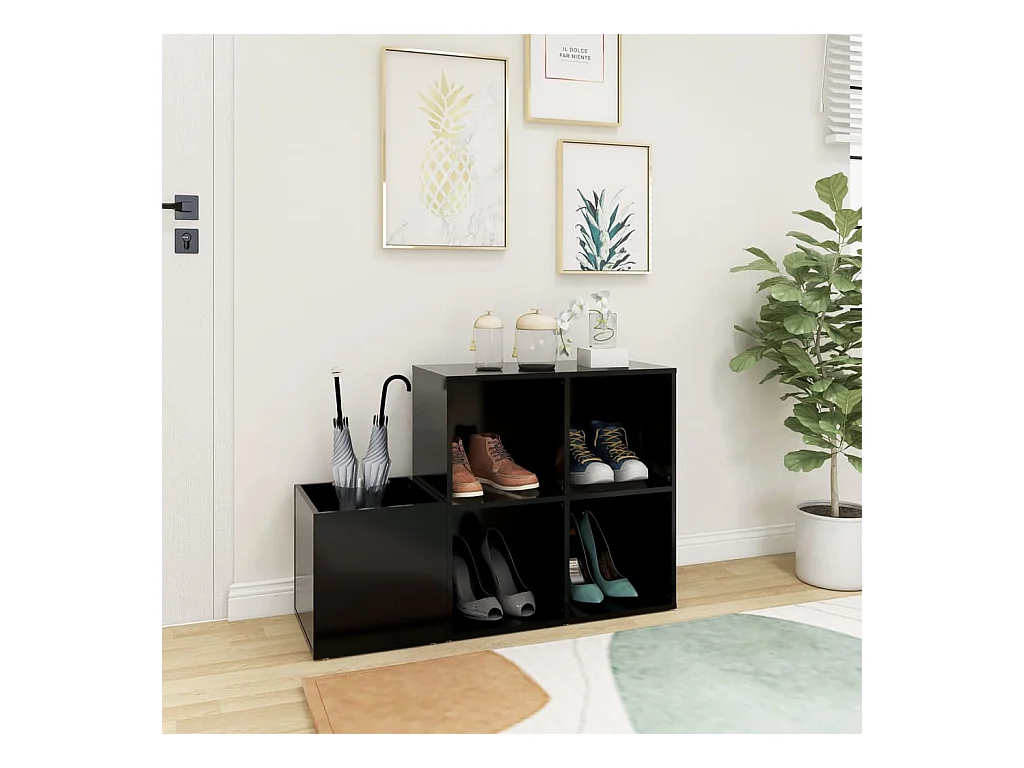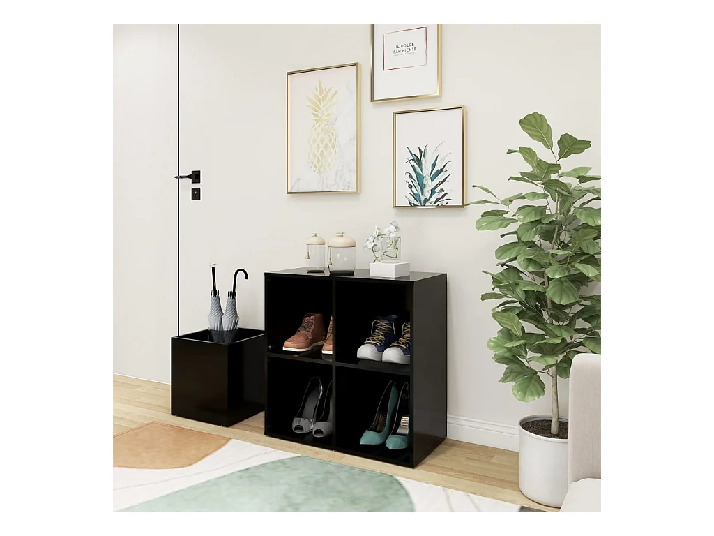 Meuble à chaussures d’entrée noir brillant bois ingénierie FR19023