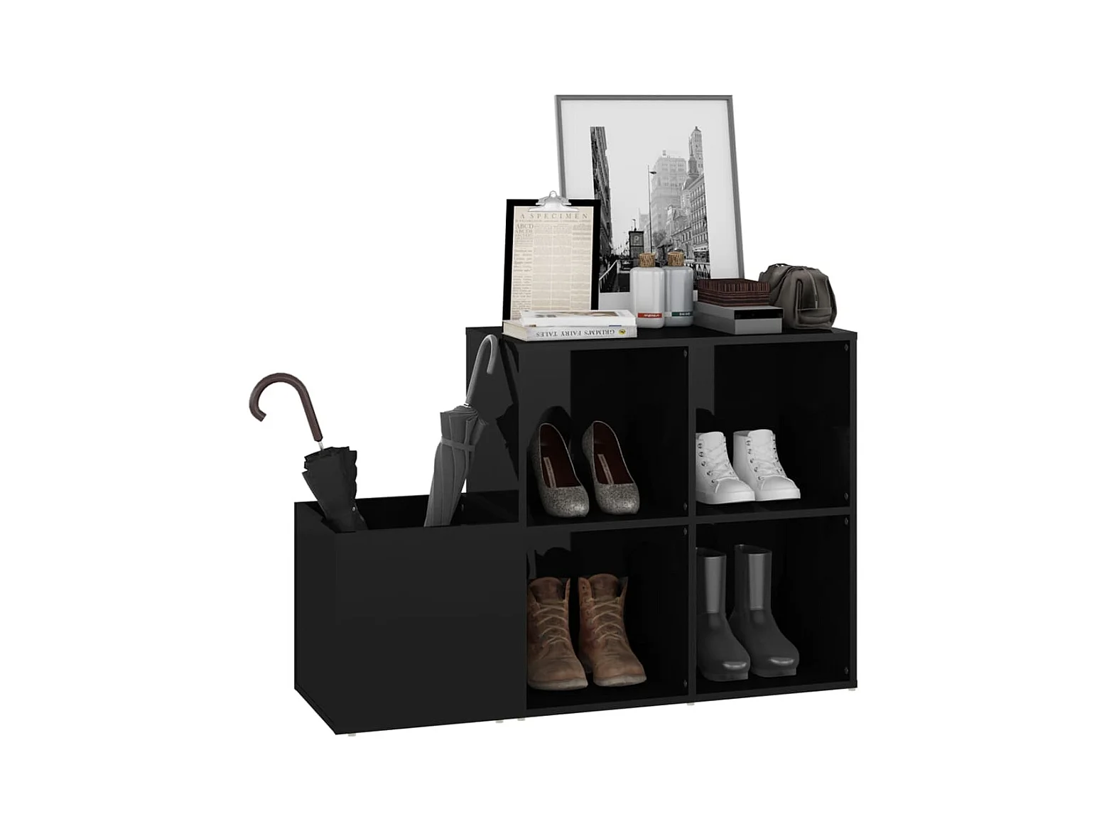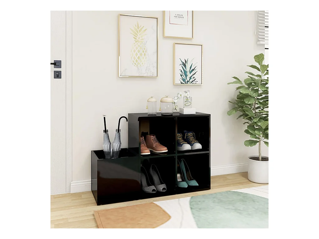 Meuble à chaussures d’entrée noir brillant bois ingénierie FR19023