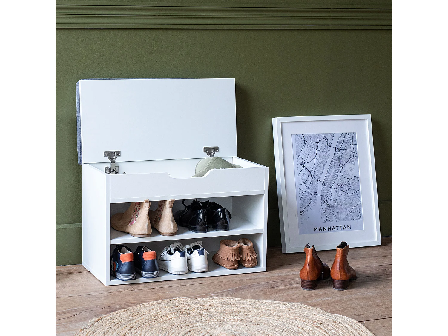 Meuble à chaussures deux casiers avec coffre blanc ALAN