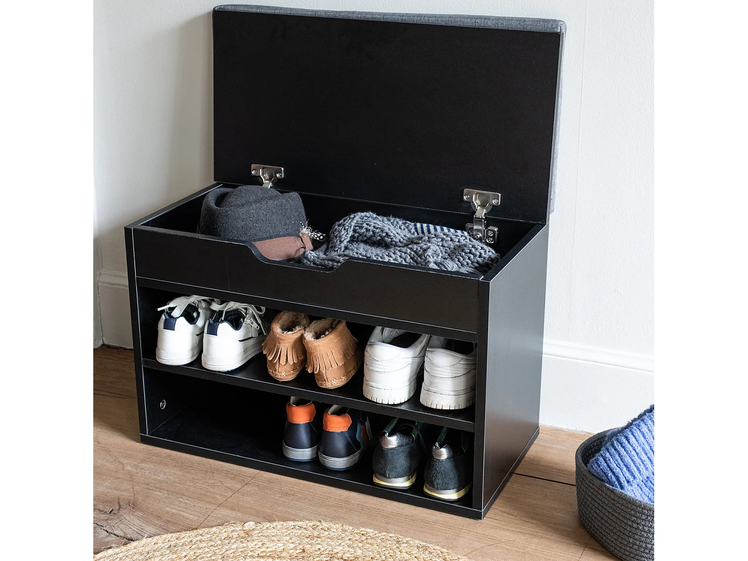 Meuble à chaussures deux casiers avec coffre noir ALAN