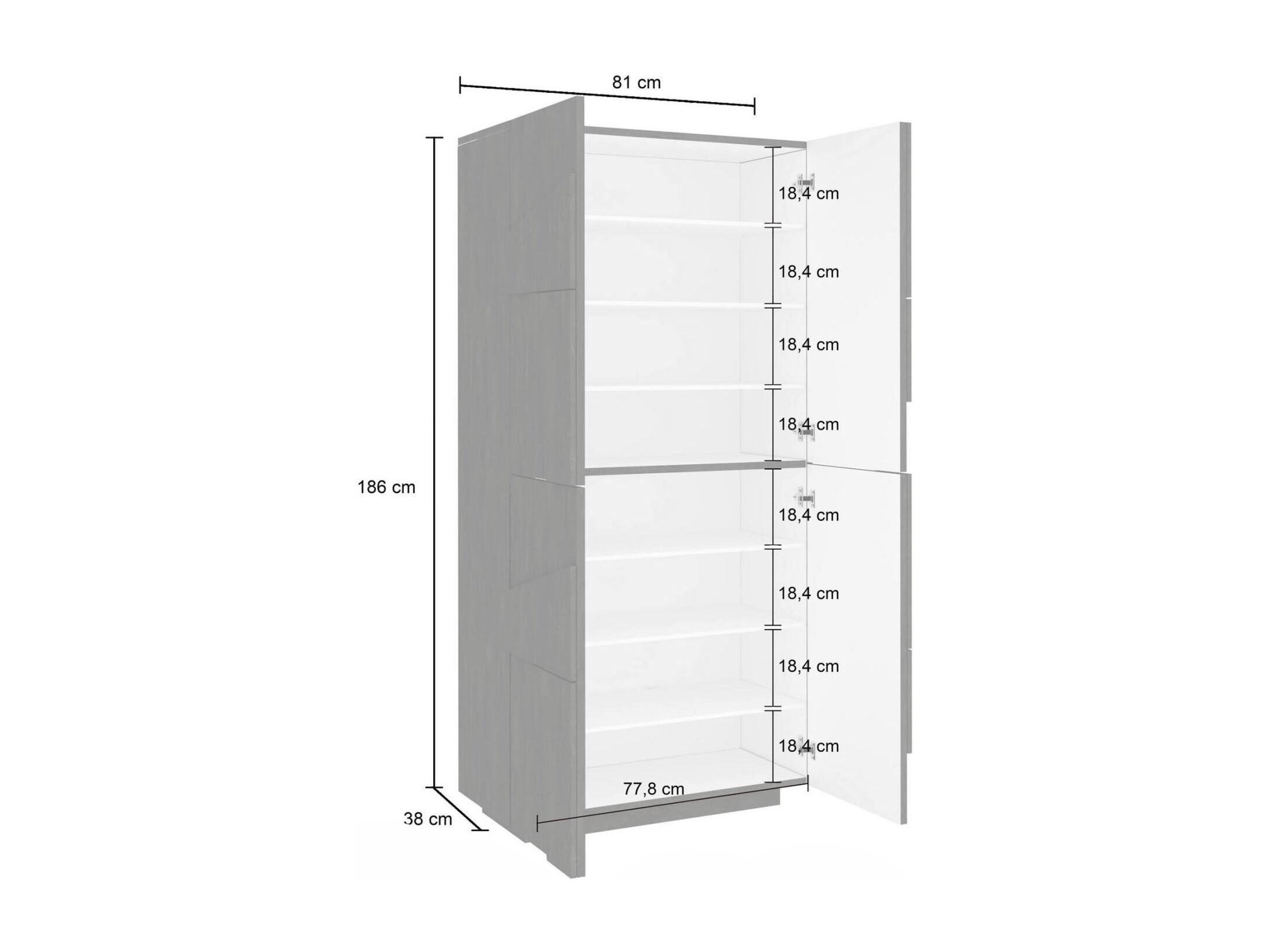 Étagère à chaussures Dlerd, Armoire polyvalente avec 4 portes battantes, Étagère à chaussures d'entrée, 100% Made in Italy, 81x38h167 cm, Ardoise