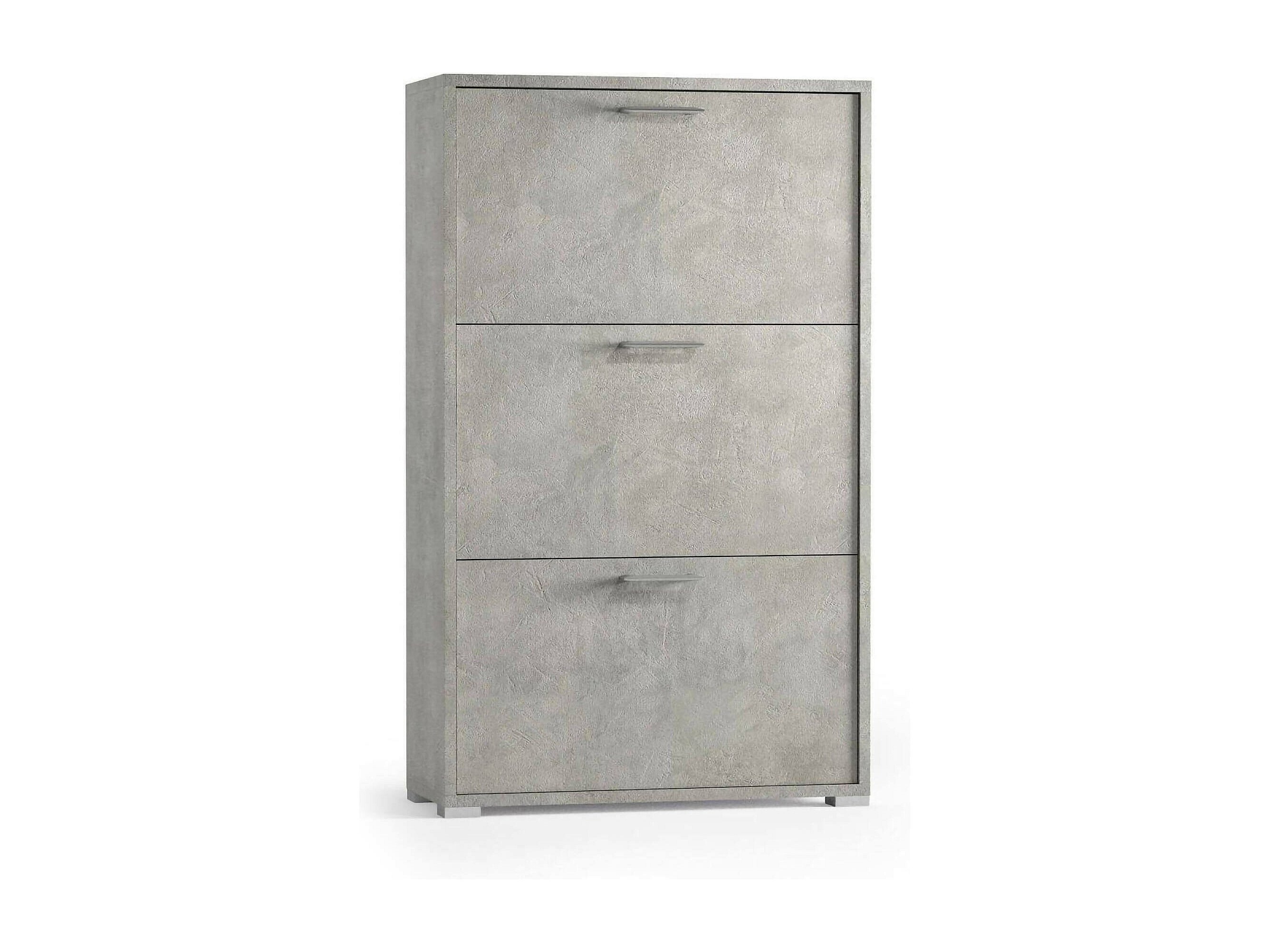 Étagère à chaussures Dlos, Meuble d'entrée polyvalent avec 3 portes pliantes, Meuble à chaussures double profondeur, 100% Made in Italy, 67x28h112 cm, Ciment