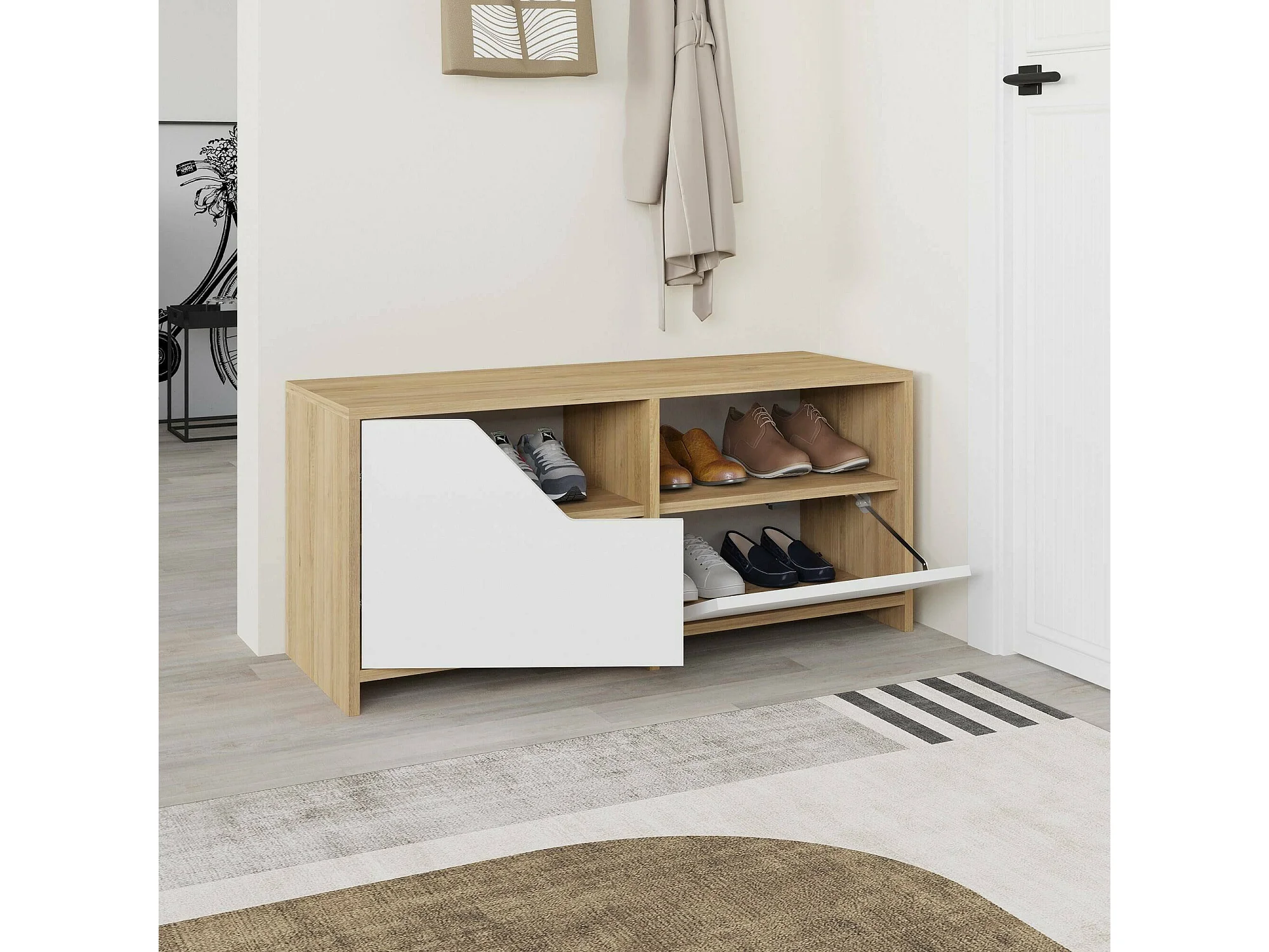 Shoe Rack Berto, 2 Étagères, 37x105x47h cm Chêne Marron, Meuble à Chaussures