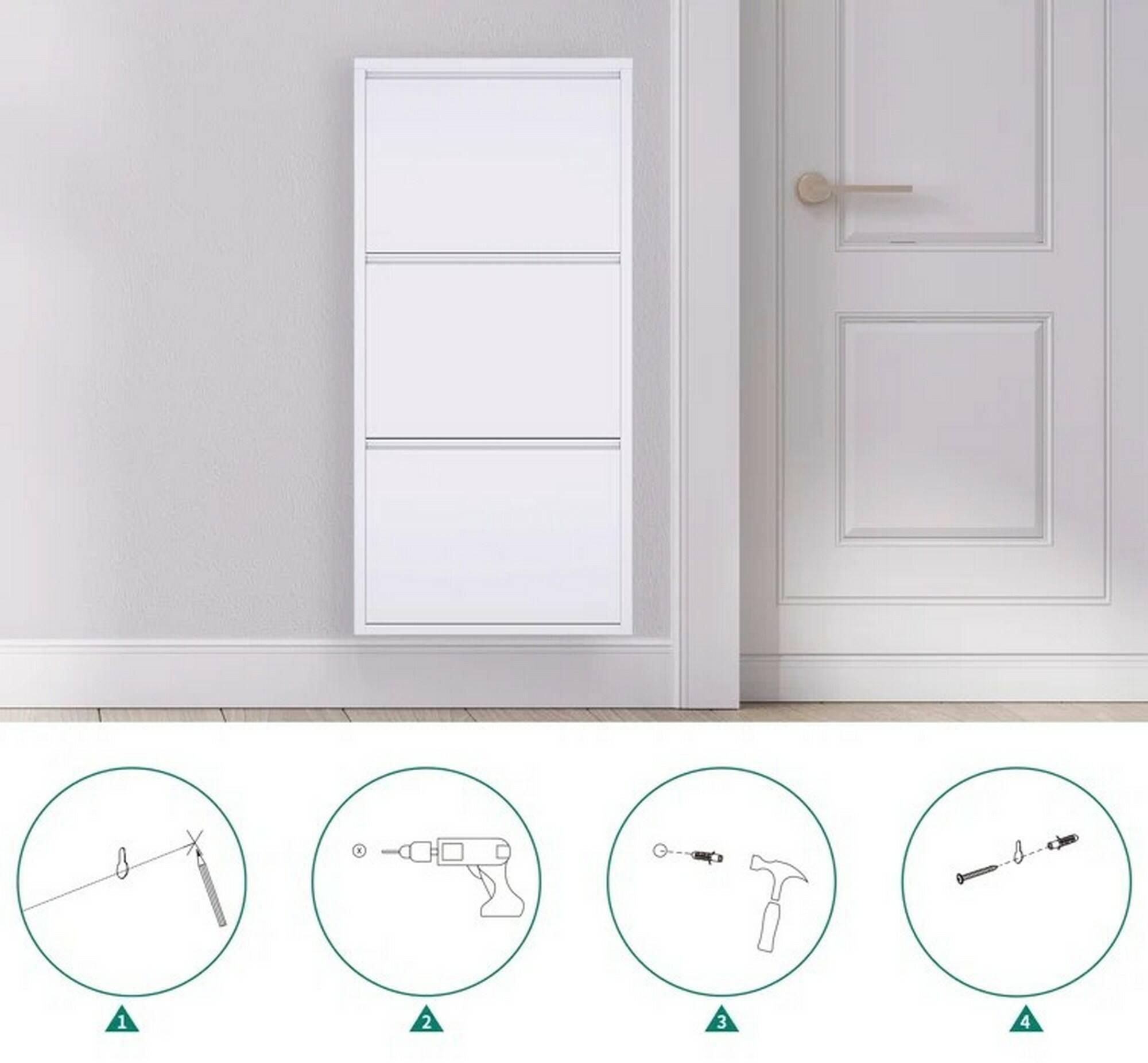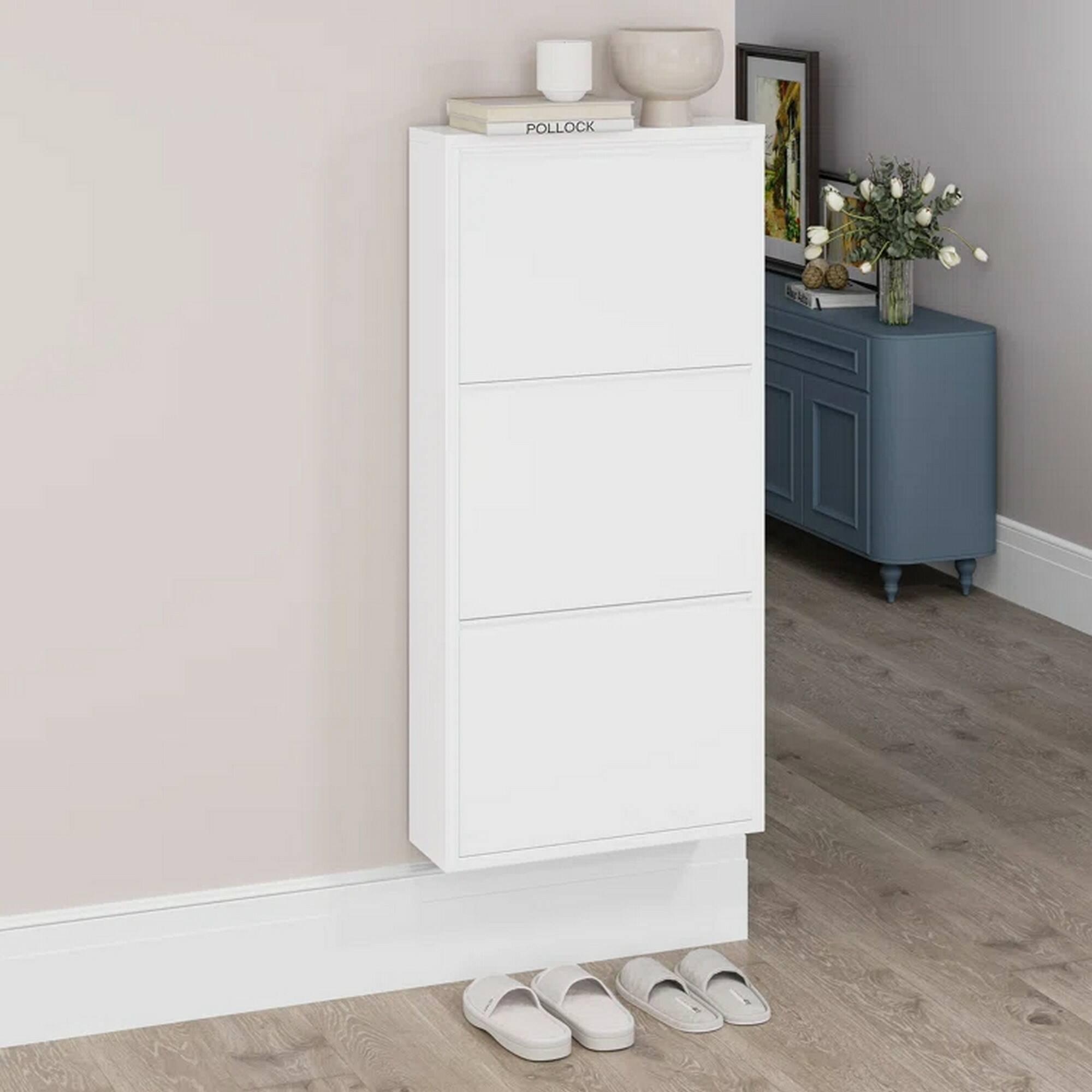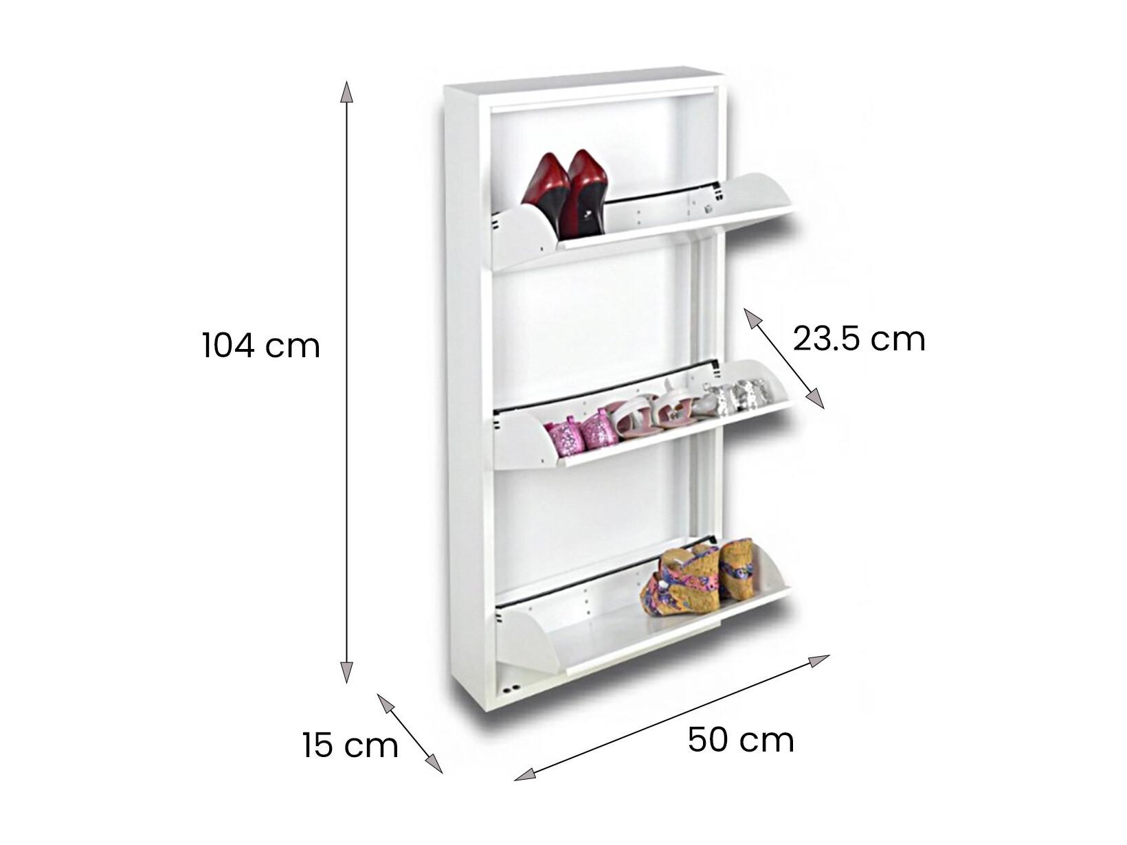Meuble à chaussures Dpapi, Étagère à chaussures peu encombrante, Étagère à chaussures d'entrée, Étagère à chaussures en métal 3 portes, 50x15h103 cm, Blanc