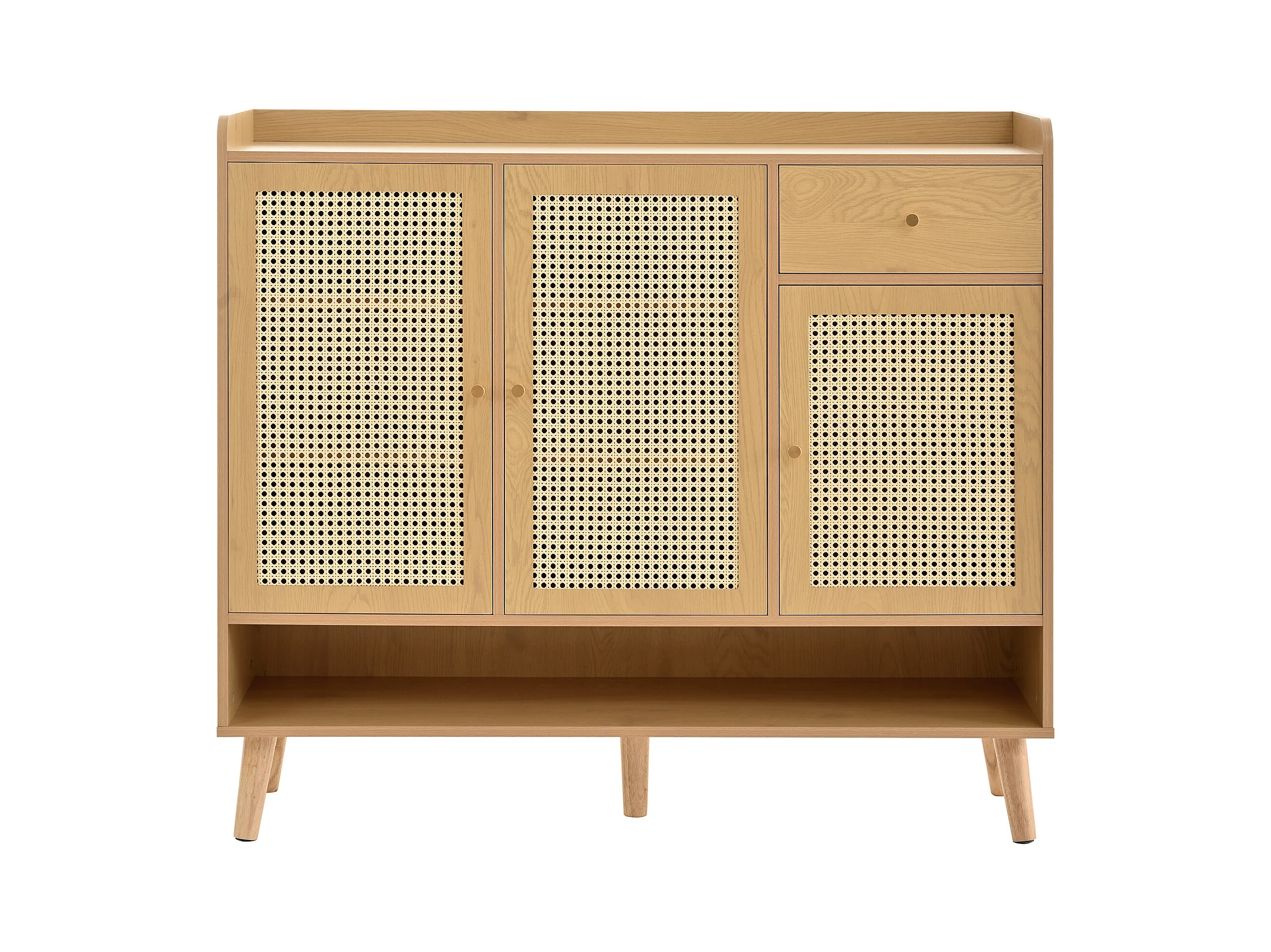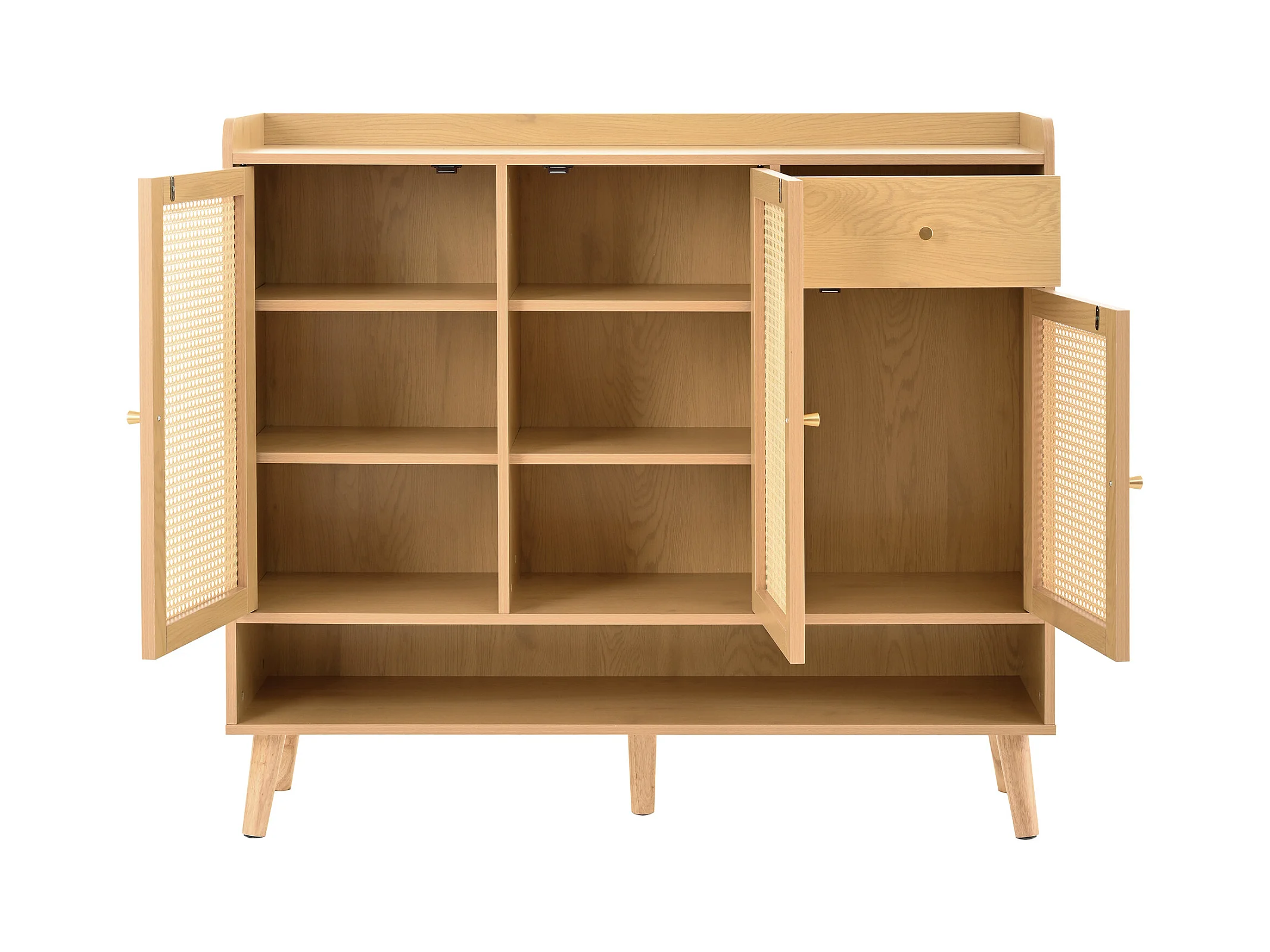 Meuble à chaussures en rotin naturel 120x35x106cm - 3 portes et 1 tiroir - panneau de particule - Naturel