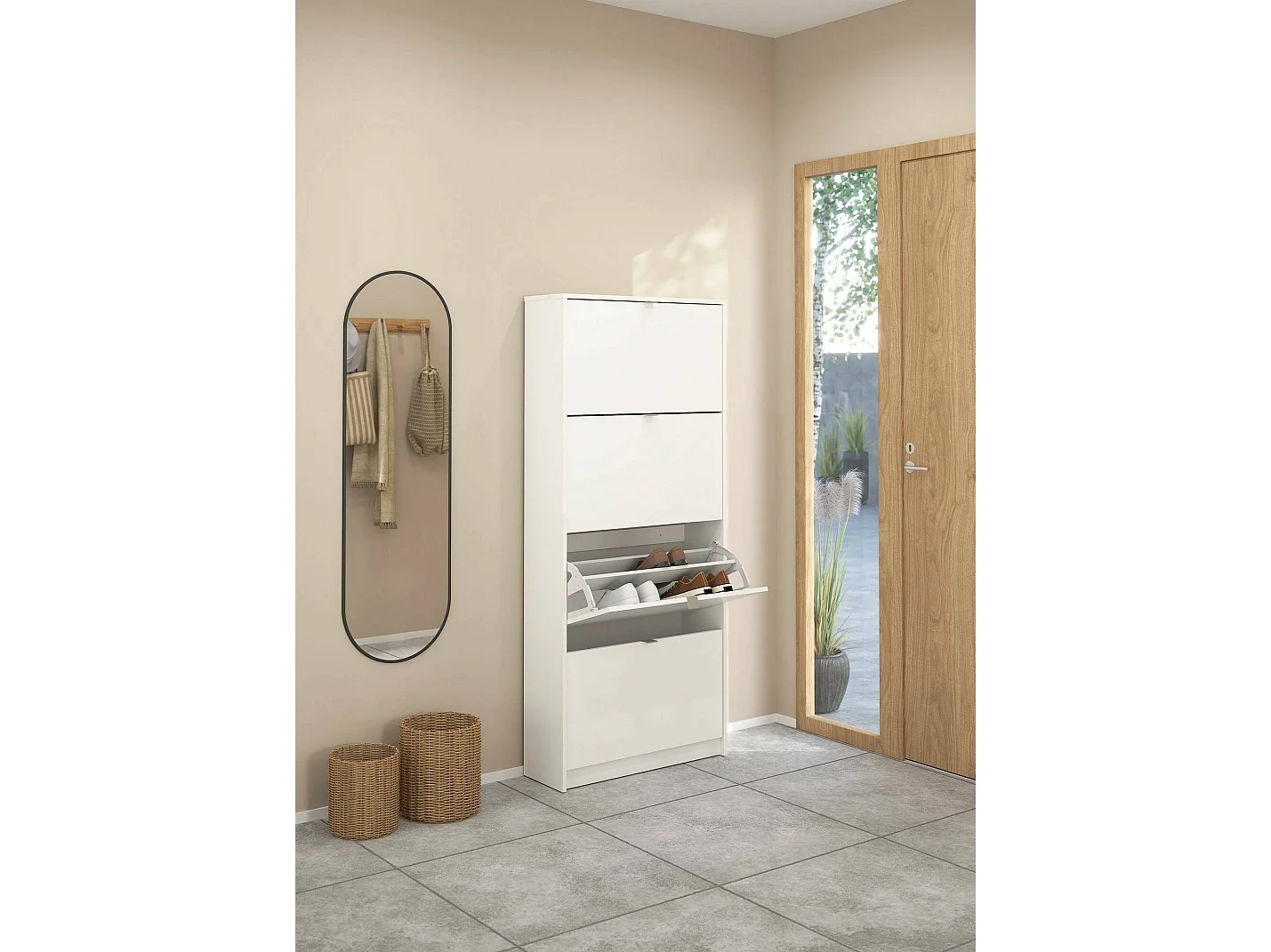 Étagère à Chaussures Épidote, 24 Paires, 24.05x70.3x162h cm Blanc, Meuble à Chaussures