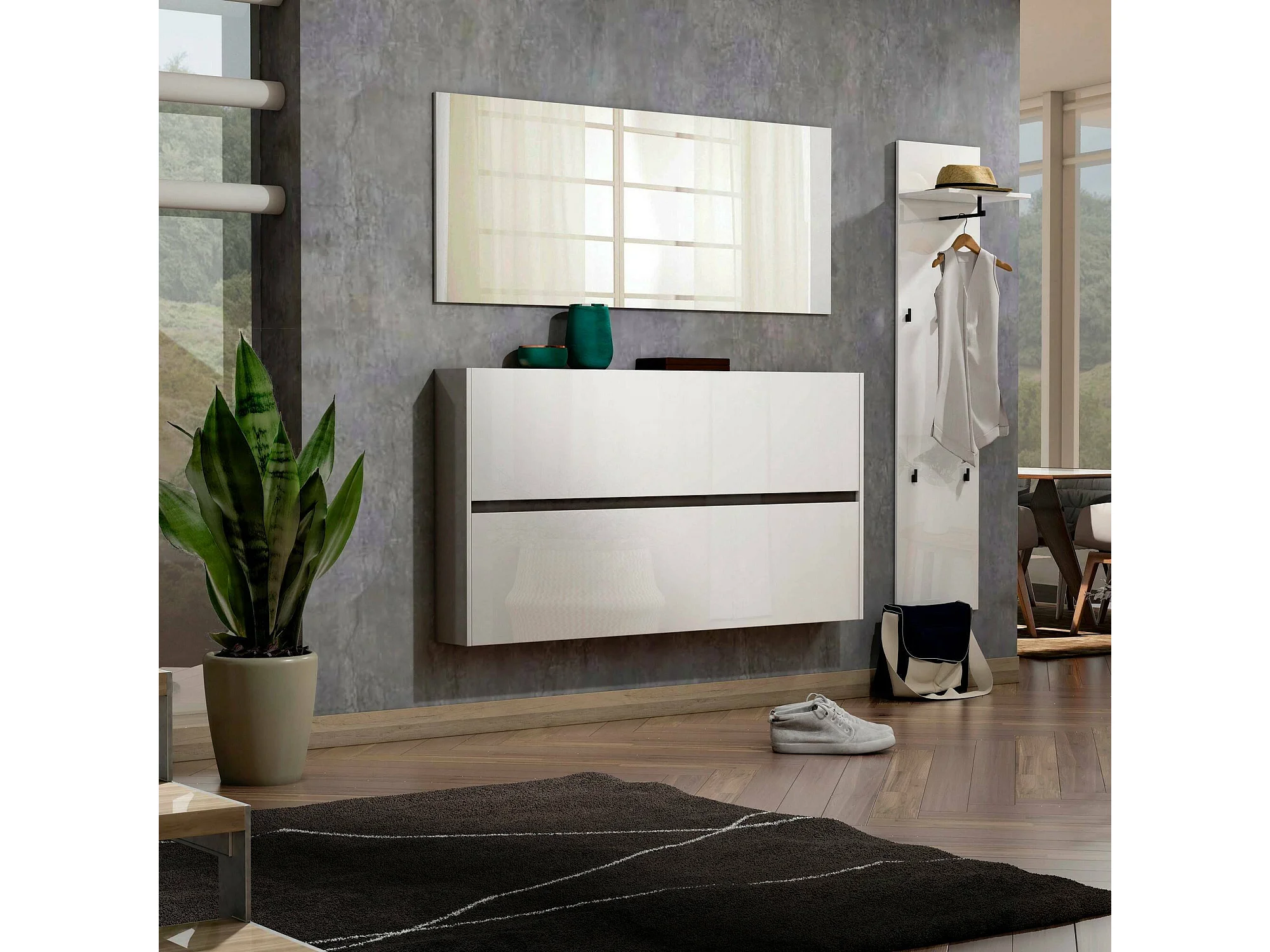 Meuble à chaussures Gaborone, Meuble à chaussures, Armoire d'entrée polyvalente, Rangement pour chaussures, Made in Italy, 160x19h85 cm, Blanc brillant