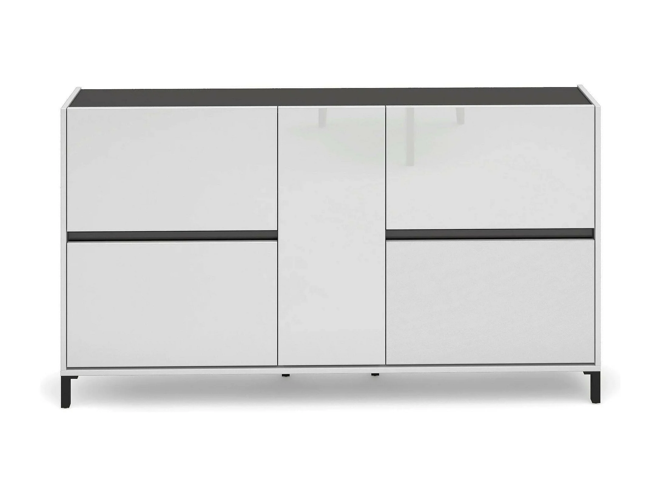 Meuble à chaussures Gitega, Meuble à chaussures, Armoire d'entrée polyvalente, Rangement pour chaussures, Made in Italy, 169x25h94 cm, Blanc brillant