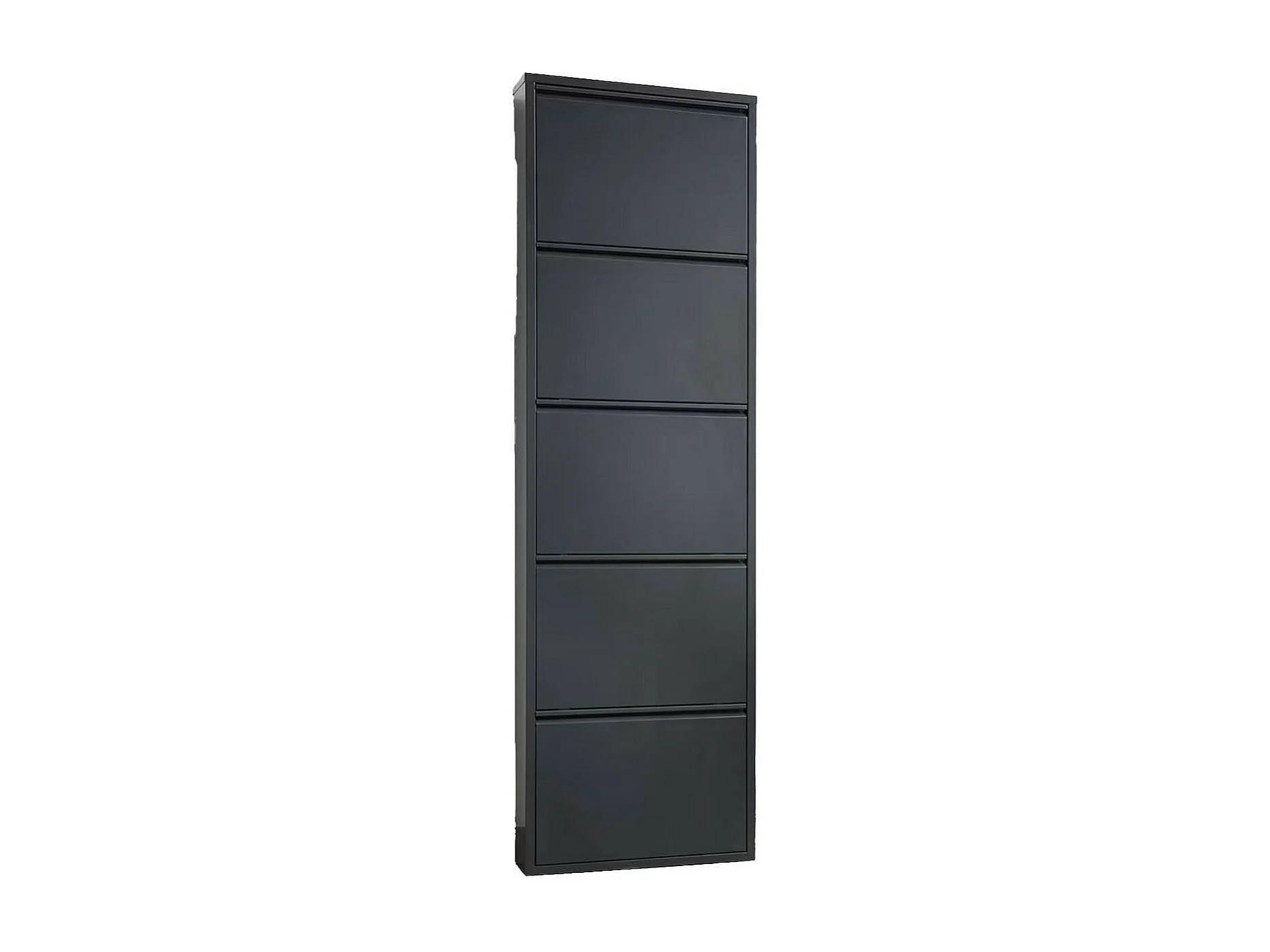 Meuble à chaussures Isidro, Meuble à chaussures en métal, Armoire d'entrée polyvalente, Rangement pour chaussures, 50x15h172 cm, Noir
