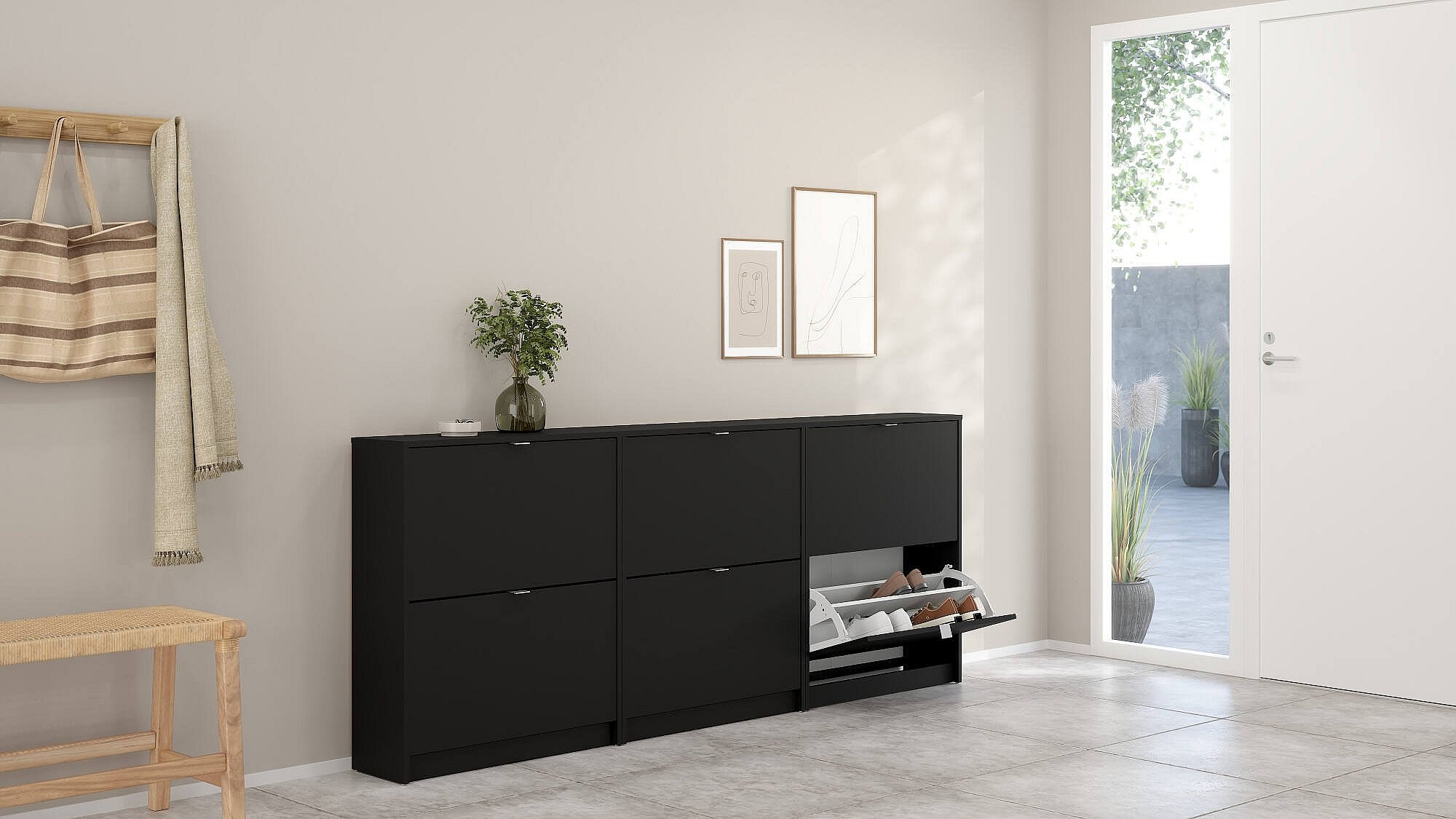 Meuble à chaussures Tisoy, 8 paires, 24,6x53,8x102,9h cm Noir, Armoire à chaussures