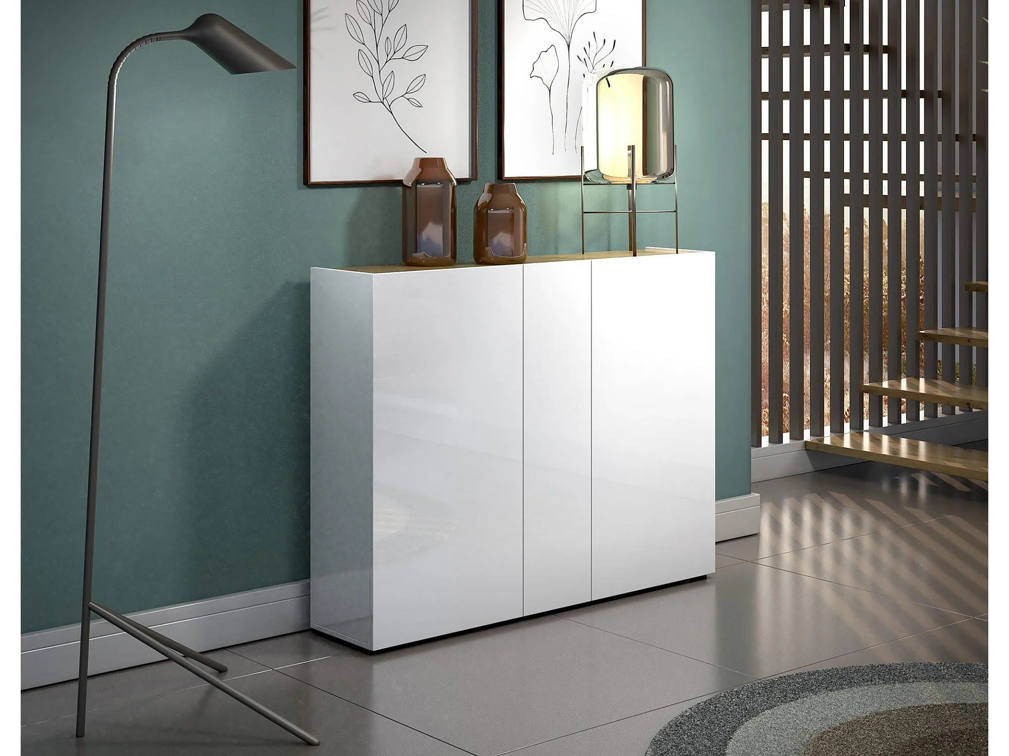 Meuble à chaussures Letaba, Meuble à chaussures, Armoire d'entrée polyvalente, Rangement pour chaussures, Made in Italy, 145x35h115 cm, Blanc brillant et chêne